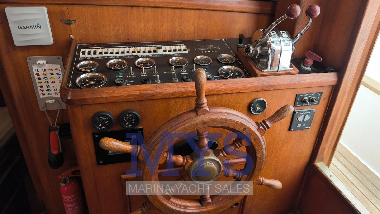 Indicateur d'angle de barre, 2 Sondeur pêche (Garmin serie 7000), 2 GPS (Garmin serie 7000), Pilote automatique (Garmin serie 7000), Plotter GPS, 3 Radio VHF (ICOM - 2 fissi + 1 portatile).