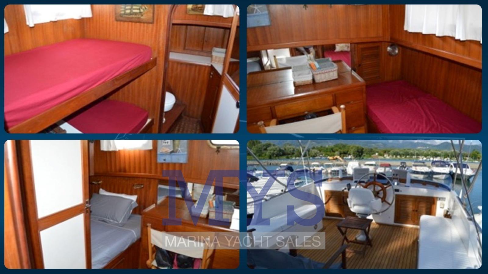 - Remplacement complet de tous les ponts en teck et superstructures (ponts, mains courantes, tête de bande, bateau dauphin, etc.) par du teck massif neuf.