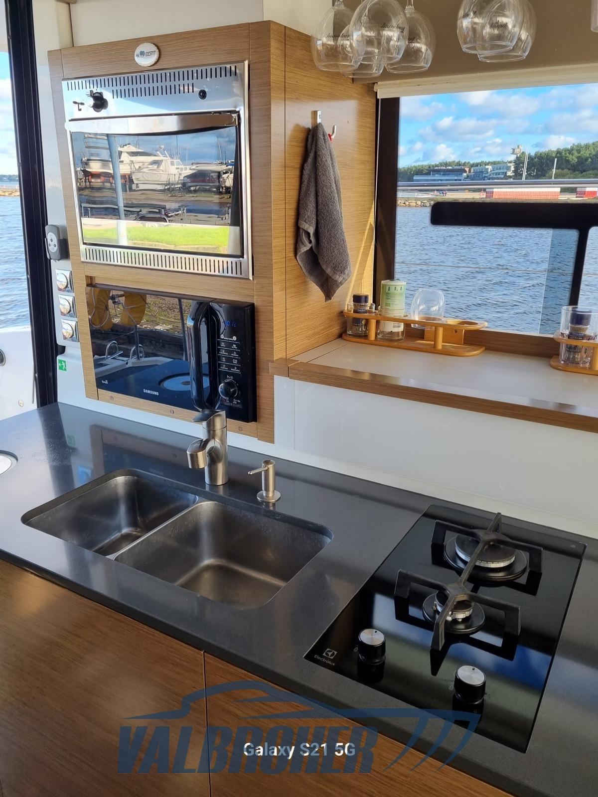 Passerelle aérienne avec de grands espaces lumineux. Propulsé par 2 Volvo Penta D3 220. 3 cabines et 2 salles de bain.
