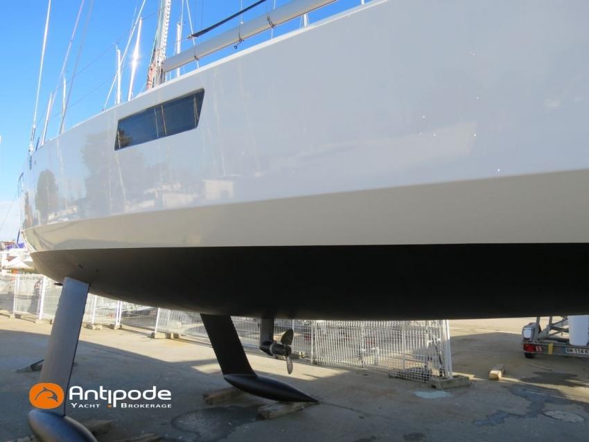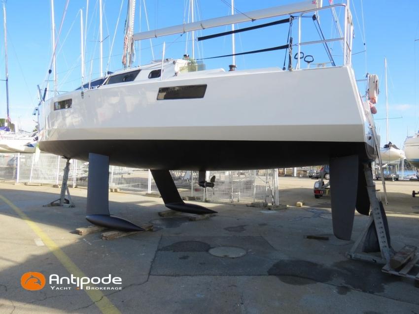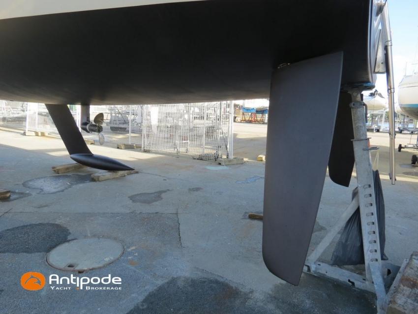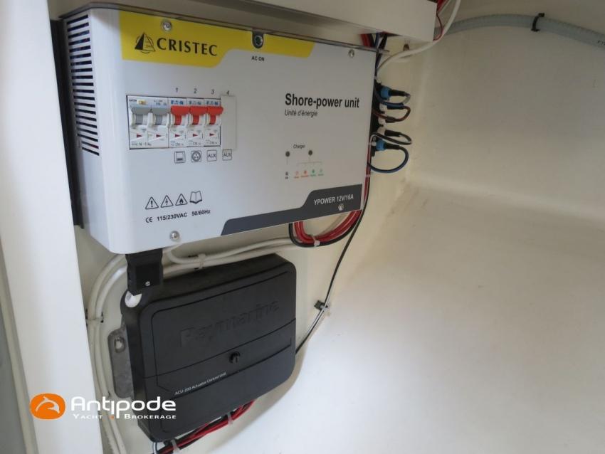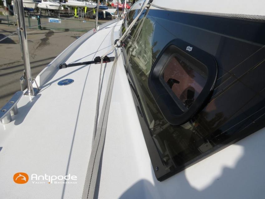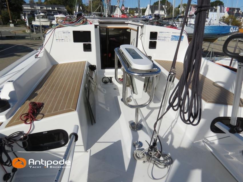 DJANGO 980, 2021, 1ère main, Yanmar 3YM30, 30 cv (1066 h), Version Bi-quille avec béquille arrière pour échouage, Bi-safran, Version d'aménagement intérieur 1 cabine avant ouverte, 2 cabines arrières, Porte pour la cabine arrière tribord, Rideaux pour fermeture lit breton et cabine arrière babord, Pack finition bois et rideaux occultant pour tous les hublots, 1 cabinet de toilette et douche, Panneau ouvrant supplémentaire dans cabine arrière tribord, Bout-dehors rétractable pour spi asymétrique - Selden, Assises de cockpit lattées flexy teck, Table de cockpit avec abattants , Capote de roof, Taud de soleil zippable sur lazybag, Guindeau électrique 800W, Télécommande guindeau sans fil, Etai remplacé en 2025, Grand-voile full batten en DCX (état moyen), Rail de guindant de grand voile + chariots de lattes (2022), Lazy-bag de grand voile, Lazy-jacks de grand voile, Enrouleur de génois avec tambour sur le pont - Facnor Flat Deck 190, Génois sur enrouleur en DCX, Trinquette sur emmagasineur FX2500, Gréement de spi classique, Tangon aluminium, Spinnaker triradial classique + chaussette, Spinnaker asymétrique + chaussette - Technique Voile, Code 0 - 56m² sur emmagasineur FX2500, Pilote automatique in board Raymarine, ACU-200, vérin type 1 et pupitre P70s, Répétiteurs Raymarine I70s cockpit, GPS / lecteur de carte dans le cockpit - Axiom 9, Cartographie électronique, Transpondeur AIS (émetteur récepteur) - Raymarine AIS700, VHF ASN à la table à carte - Raymarine Ray63, Système audio Fusion + HP, Unité réfrigérante 12 V ouverture par le dessus, Chauffe-eau 220 V + échangeur, Eau chaude et froide sous pression, Gazinière 2 feux + four, Prise de quai 220 V + chargeur de batteries Cristec, Batterie moteur, 2 x Batteries service (2 x 77Ah), Contrôleur / gestionnaire de batteries - Victron Energy, Chauffage WEBASTO, Réservoir rigide eaux noires, Douchette de cockpit eau froide, Feux de navigations à Leds, Eclairages intérieurs à Leds, Radeau de survie Plastimo Transocean 6 personnes (prochaine révision 2027), Equipement de sécurité semi-hauturier 6 pers., Mouillage principal ancre Fob rock 12kg + 25m de chaine + 25m de cablot, Amarres et défenses, Visible Bretagne. Pour plus d'informations ou pour fixer un rendez-vous de visite, contact : Jean-Baptiste Lemaire 06 10 25 00 03 - jb@antipode-yachts.com