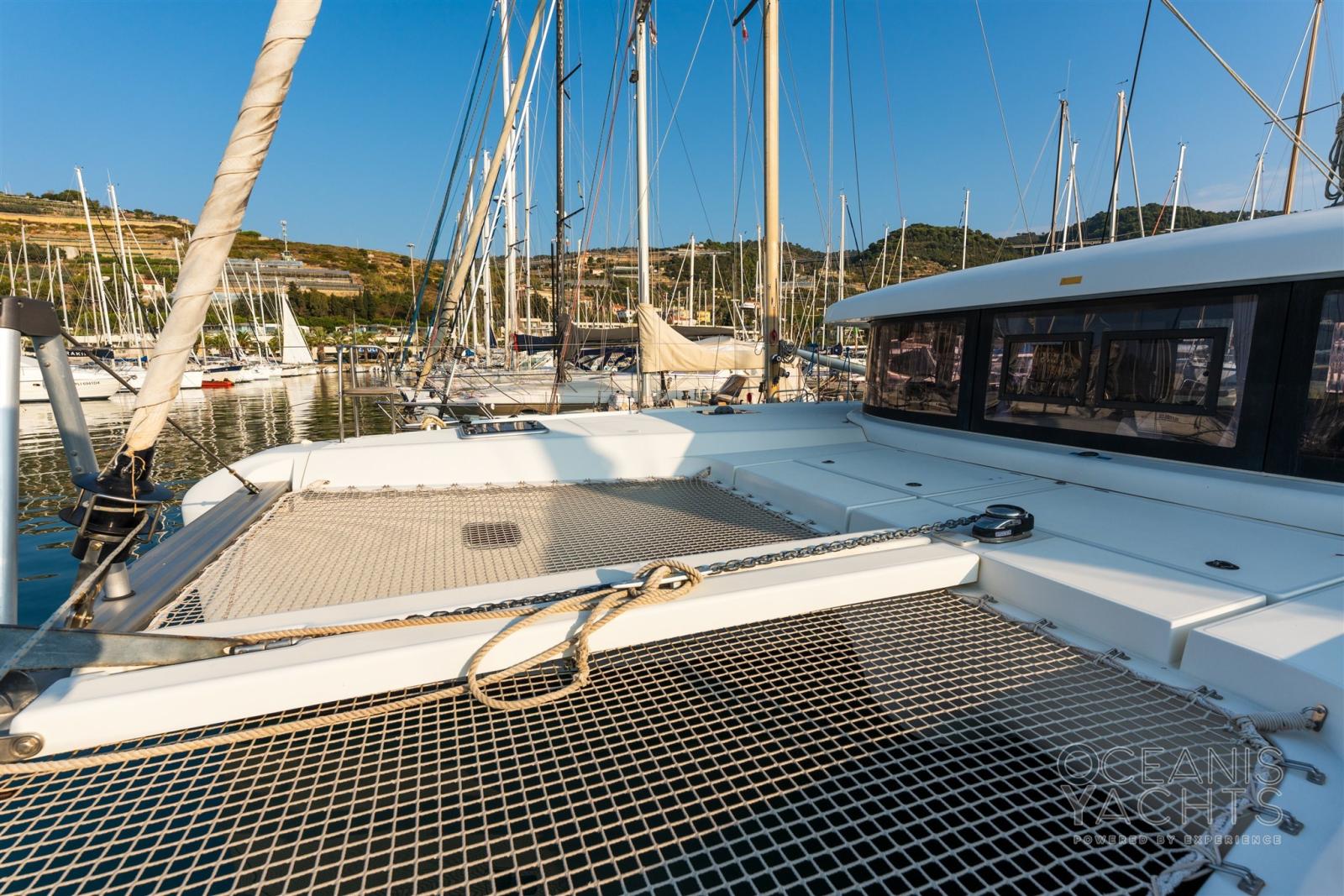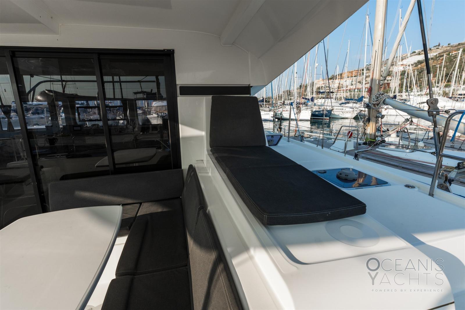 Douche de cockpit, Bossoirs, Éclairage de courtoisie, Moteur hors-bord pour annexe, Panneau solaire, Défenses, Porte latérale, Annexe.