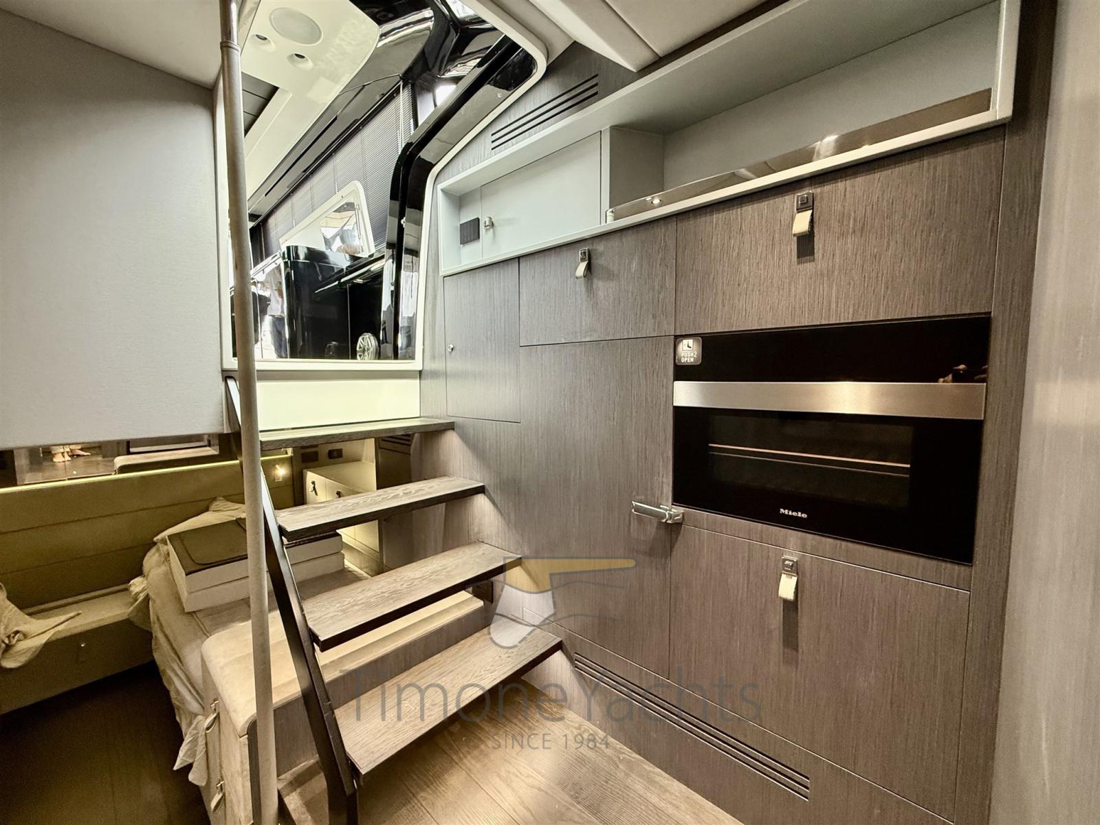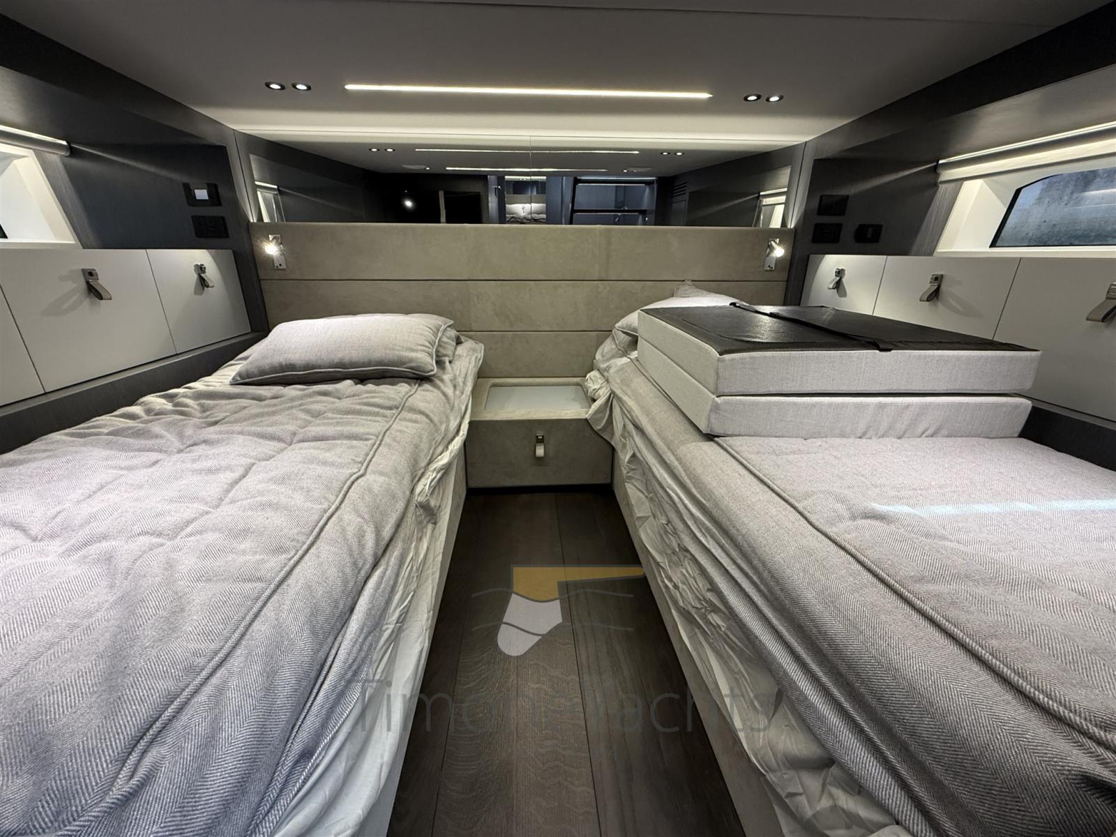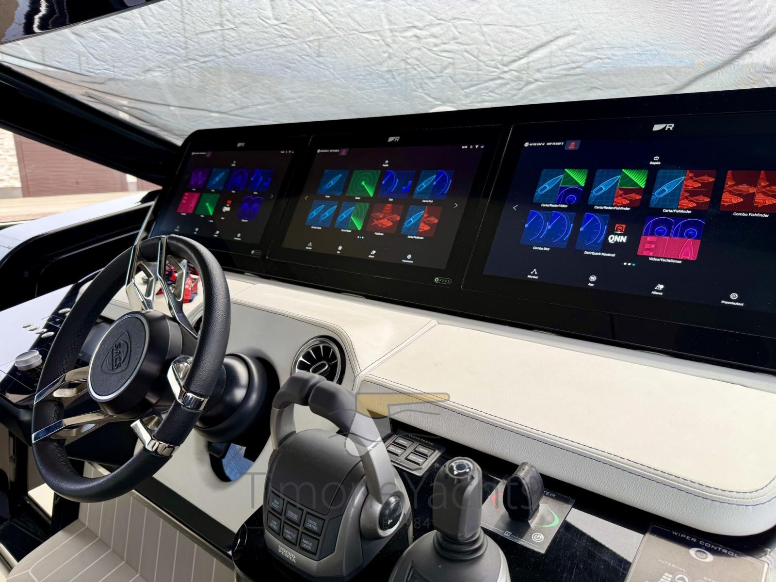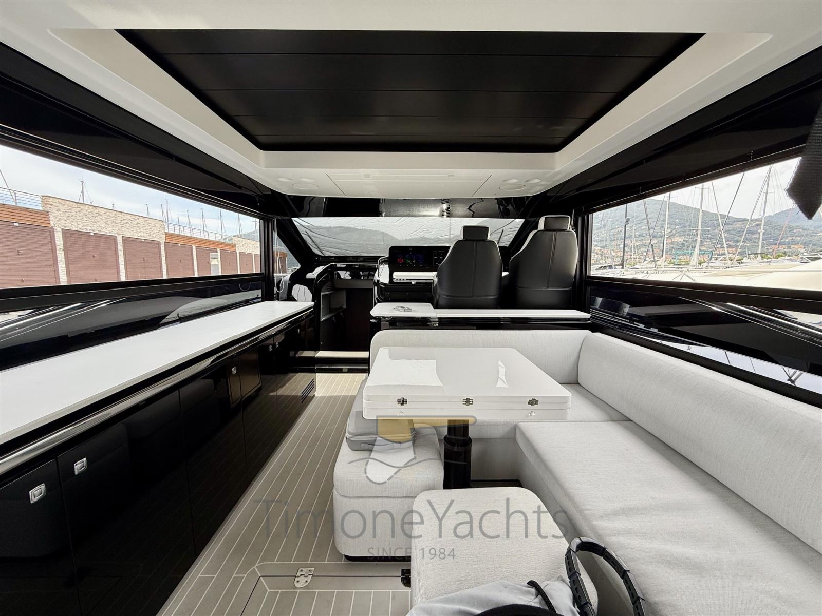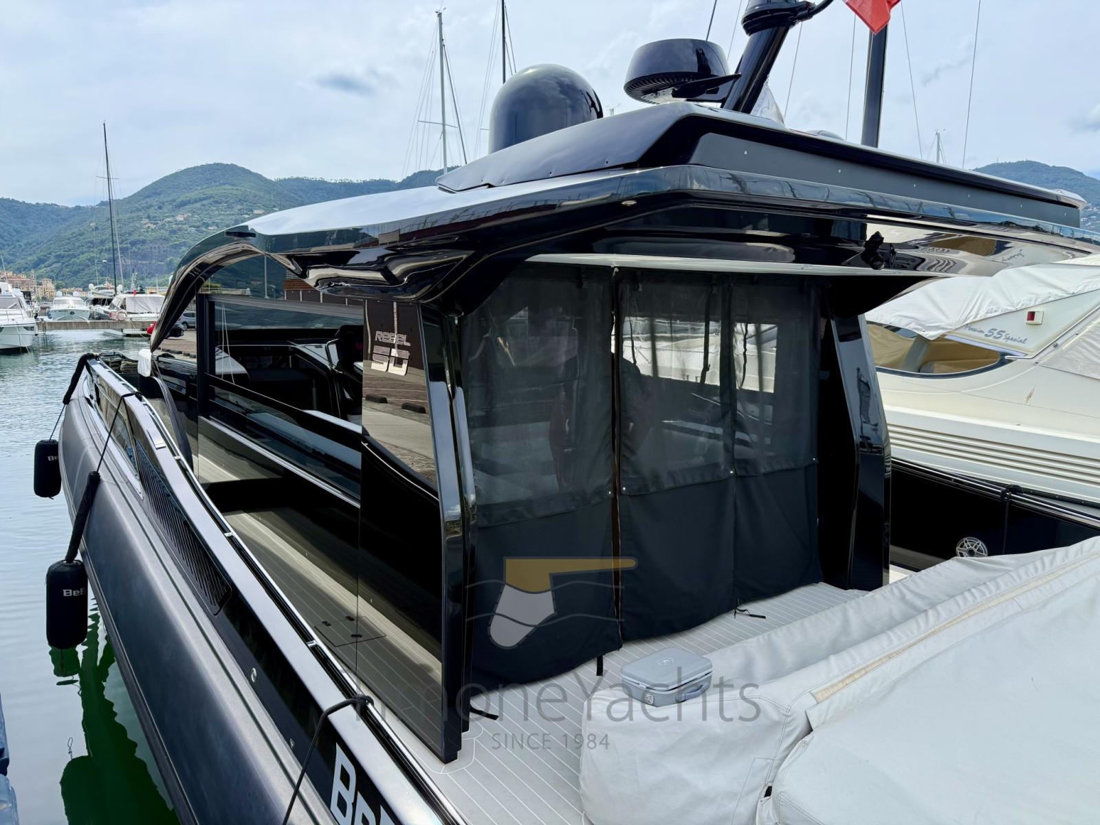Alarme gaz, Alarme moteur, Alarme de pompe de cale, Alternateur, Eau sous pression, Couleur spéciale, Douche de cockpit, Flaps électriques, Hard top (Con lamelle apribili), Passerelle, Plateforme arrière, Porte latérale, Prise de quai, Connexion eau sous pression à quai, Guindeau électrique, Stabilisateurs, Table pliante de salon, Corne.