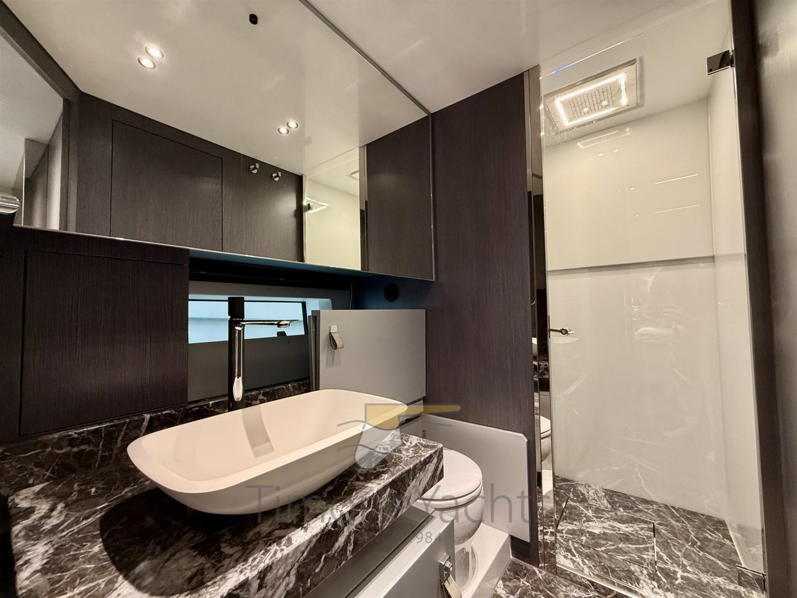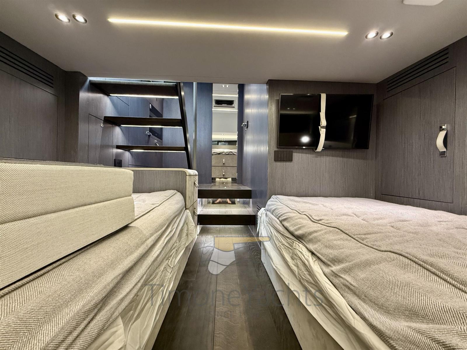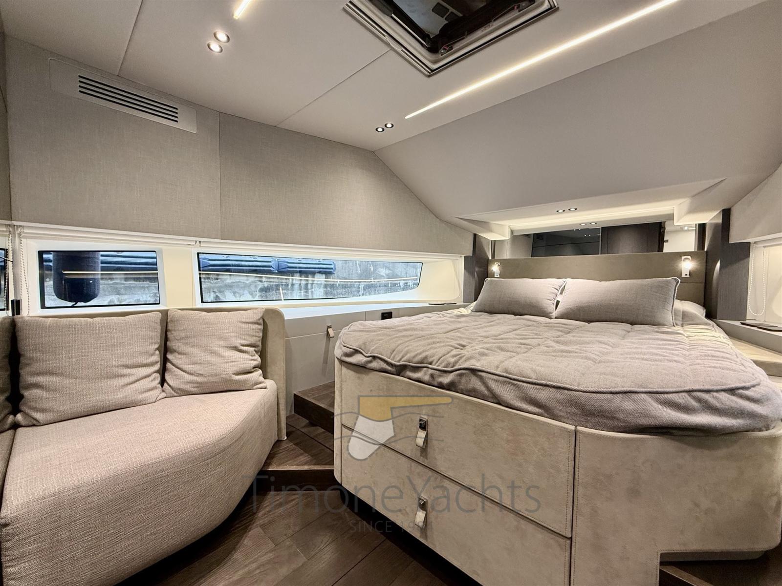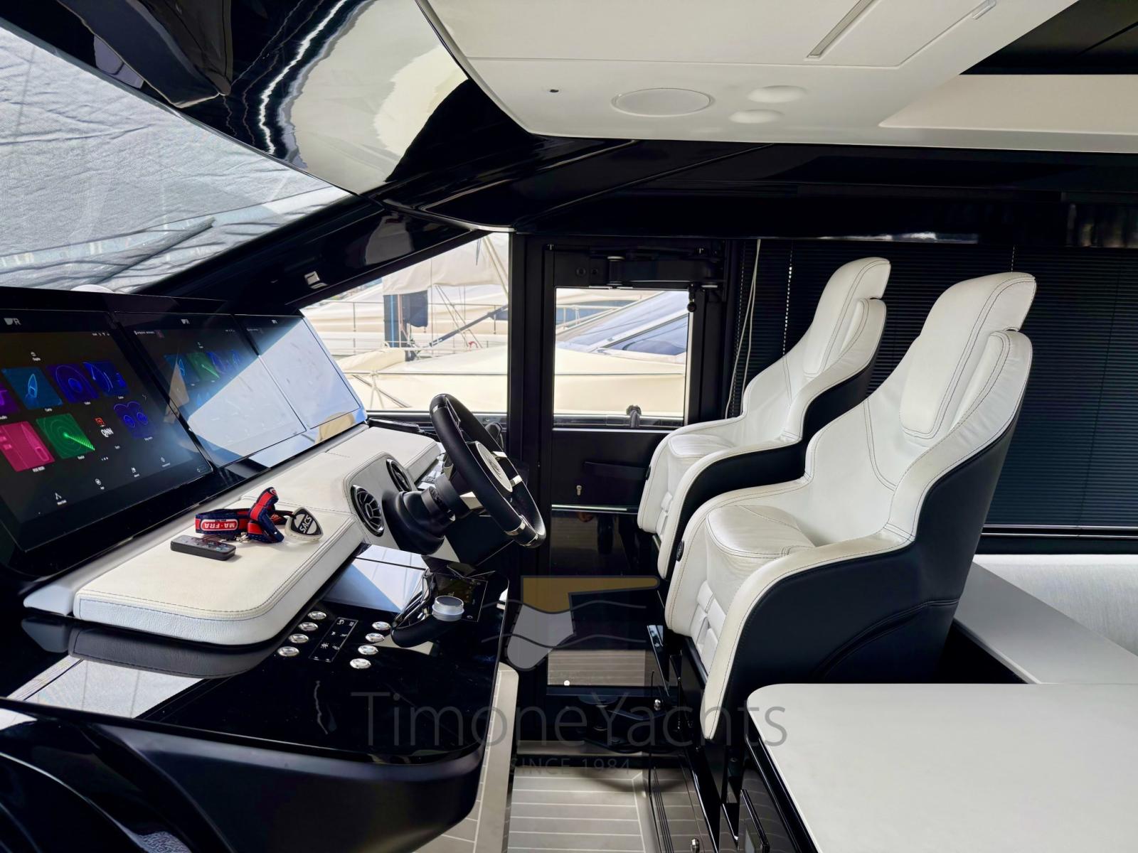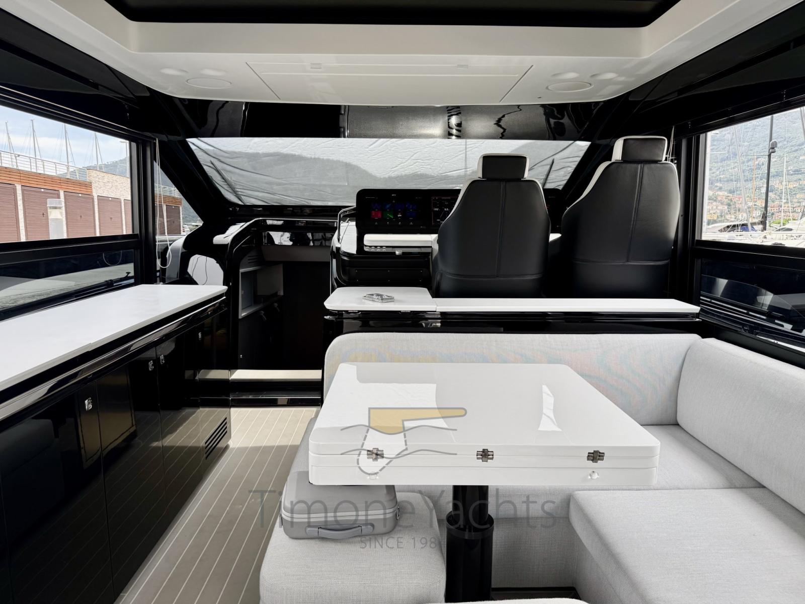 Alarme gaz, Alarme moteur, Alarme de pompe de cale, Alternateur, Eau sous pression, Couleur spéciale, Douche de cockpit, Flaps électriques, Hard top (Con lamelle apribili), Passerelle, Plateforme arrière, Porte latérale, Prise de quai, Connexion eau sous pression à quai, Guindeau électrique, Stabilisateurs, Table pliante de salon, Corne.