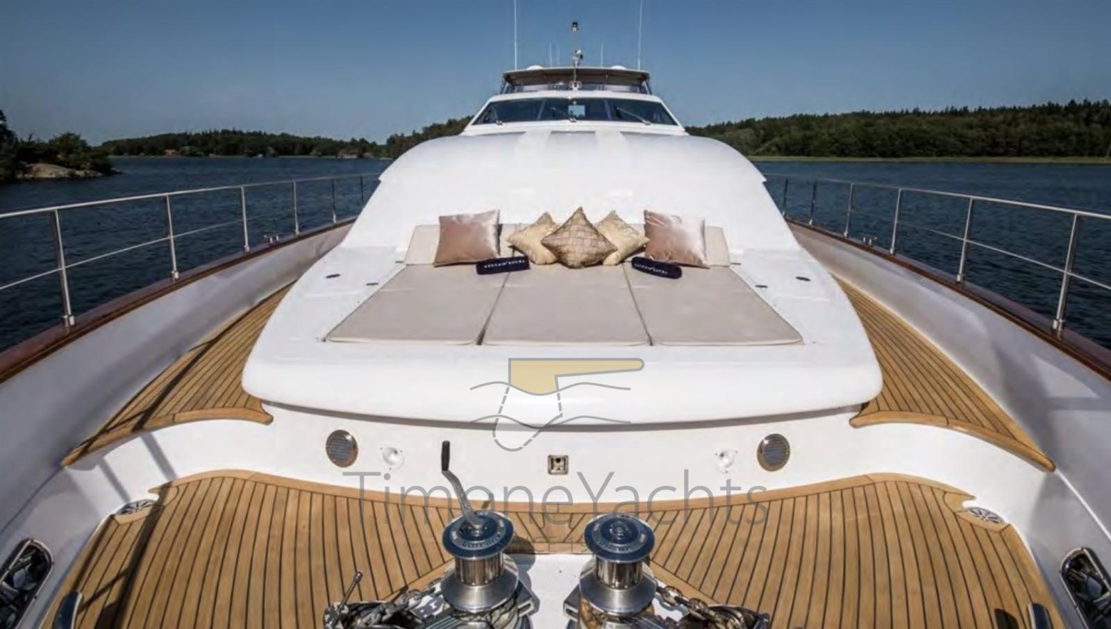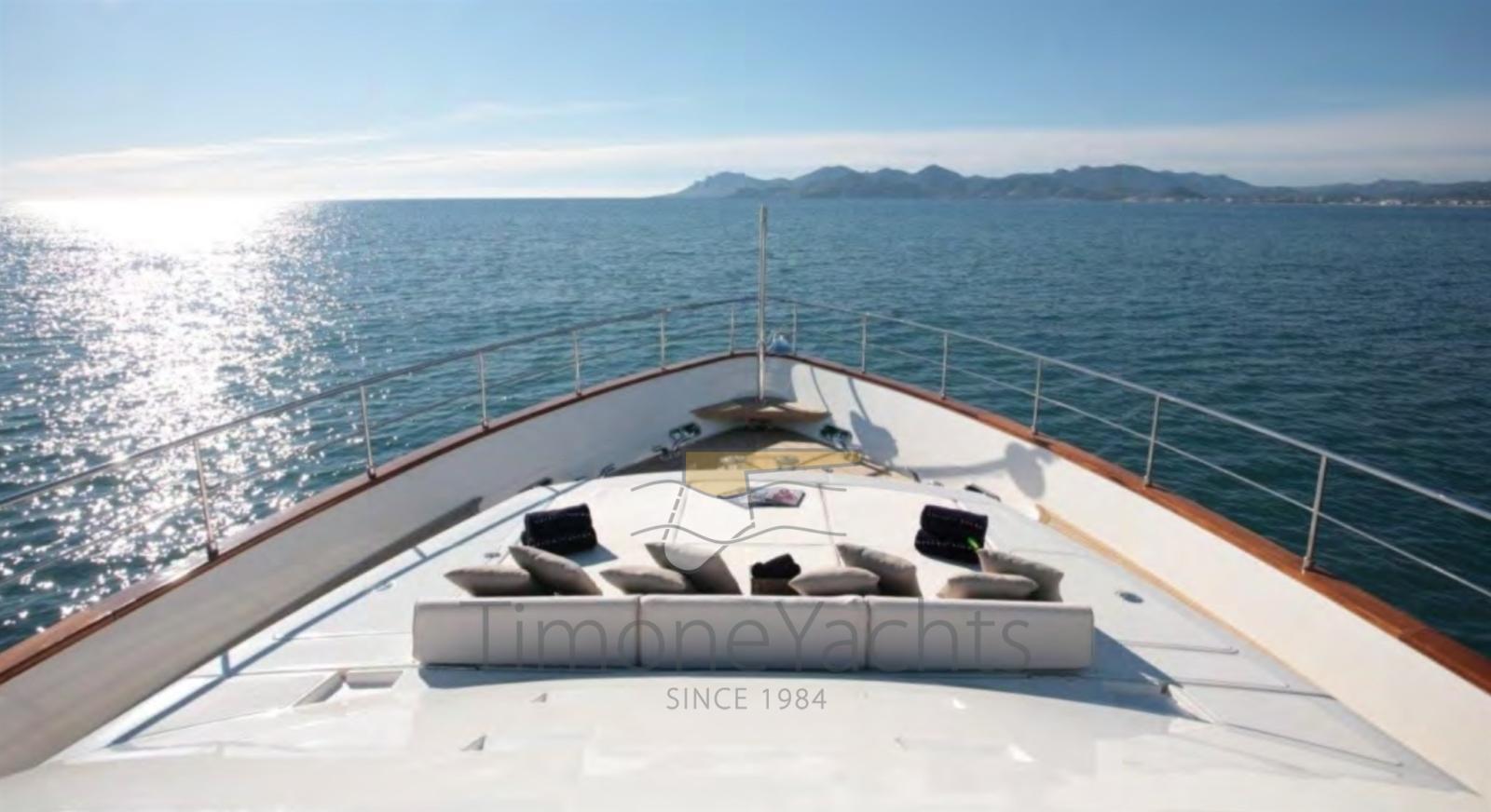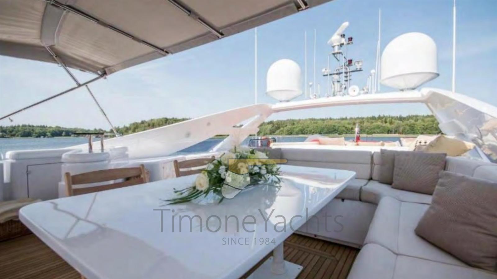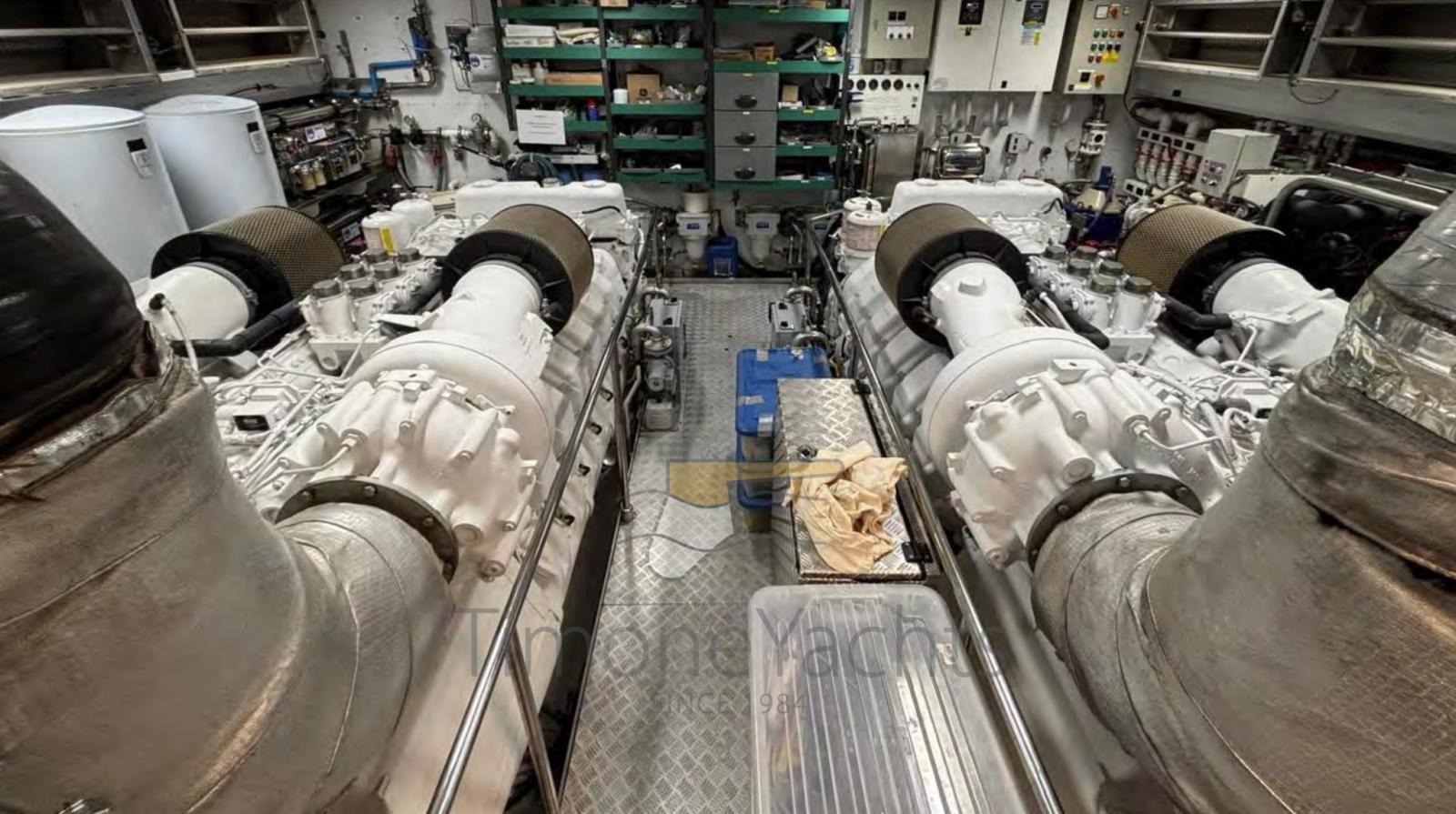 Alarme gaz, Alarme moteur, Alarme de pompe de cale, Alternateur, 2 Ancre, Eau sous pression, Passavant en teck, Double barre à roue, Flaps hydrauliques, Grue de flybridge, 2 Extincteur(s) fixe(s), Compresseur de plongée, Lavage de chaine, Passerelle, Pont en teck, Porte latérale, Cockpit en teck, Prise de quai, Connexion eau sous pression à quai, Selles pour Annexe, Stabilisateurs, table de cockpit, Annexe, Corne, Winch électrique arrière, Winch électrique avant.