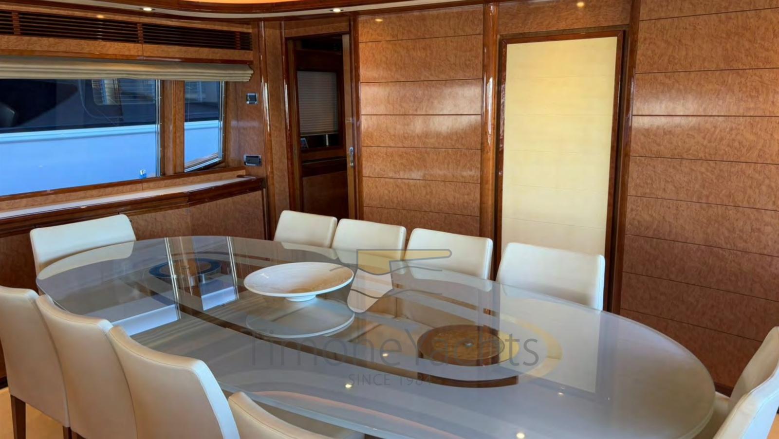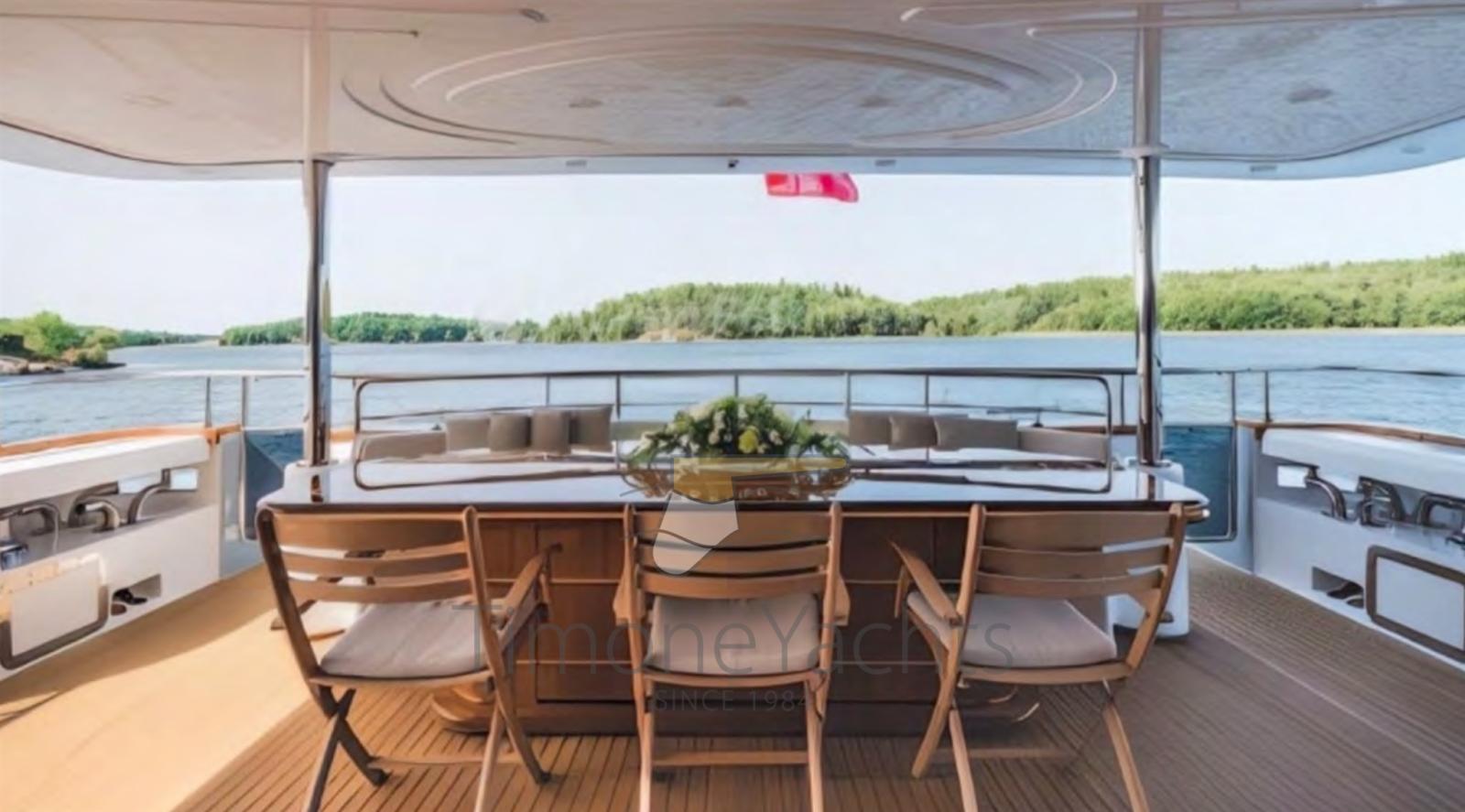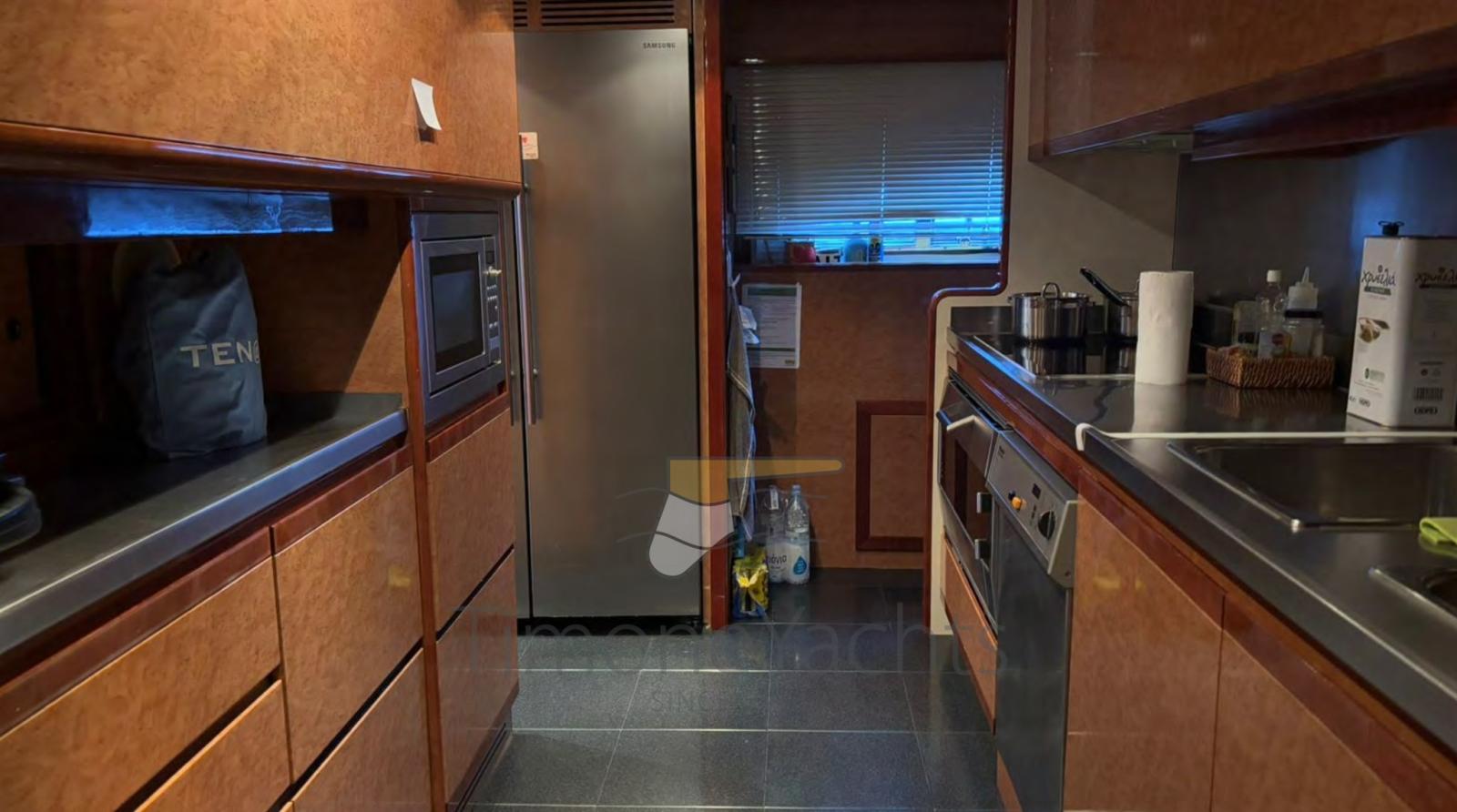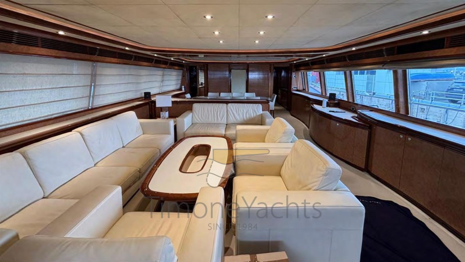Alarme gaz, Alarme moteur, Alarme de pompe de cale, Alternateur, 2 Ancre, Eau sous pression, Passavant en teck, Double barre à roue, Flaps hydrauliques, Grue de flybridge, 2 Extincteur(s) fixe(s), Compresseur de plongée, Lavage de chaine, Passerelle, Pont en teck, Porte latérale, Cockpit en teck, Prise de quai, Connexion eau sous pression à quai, Selles pour Annexe, Stabilisateurs, table de cockpit, Annexe, Corne, Winch électrique arrière, Winch électrique avant.