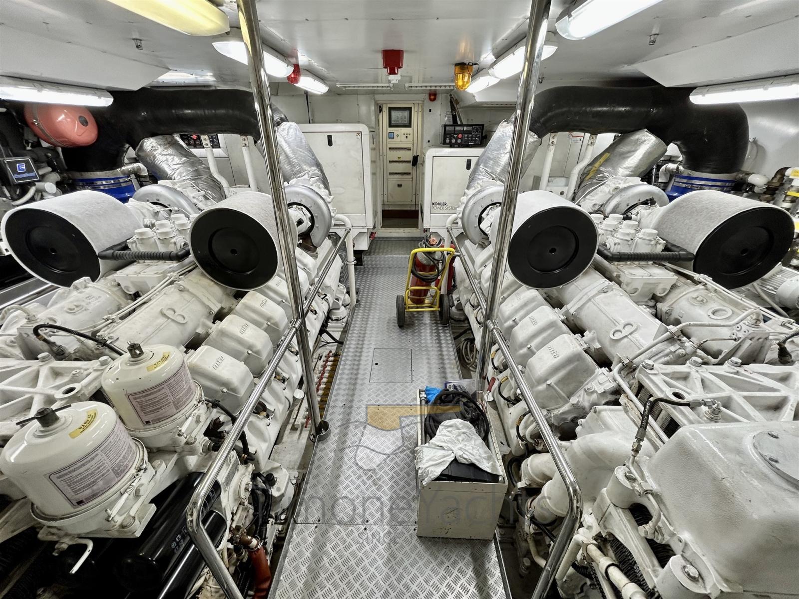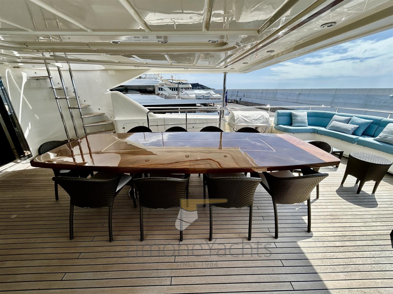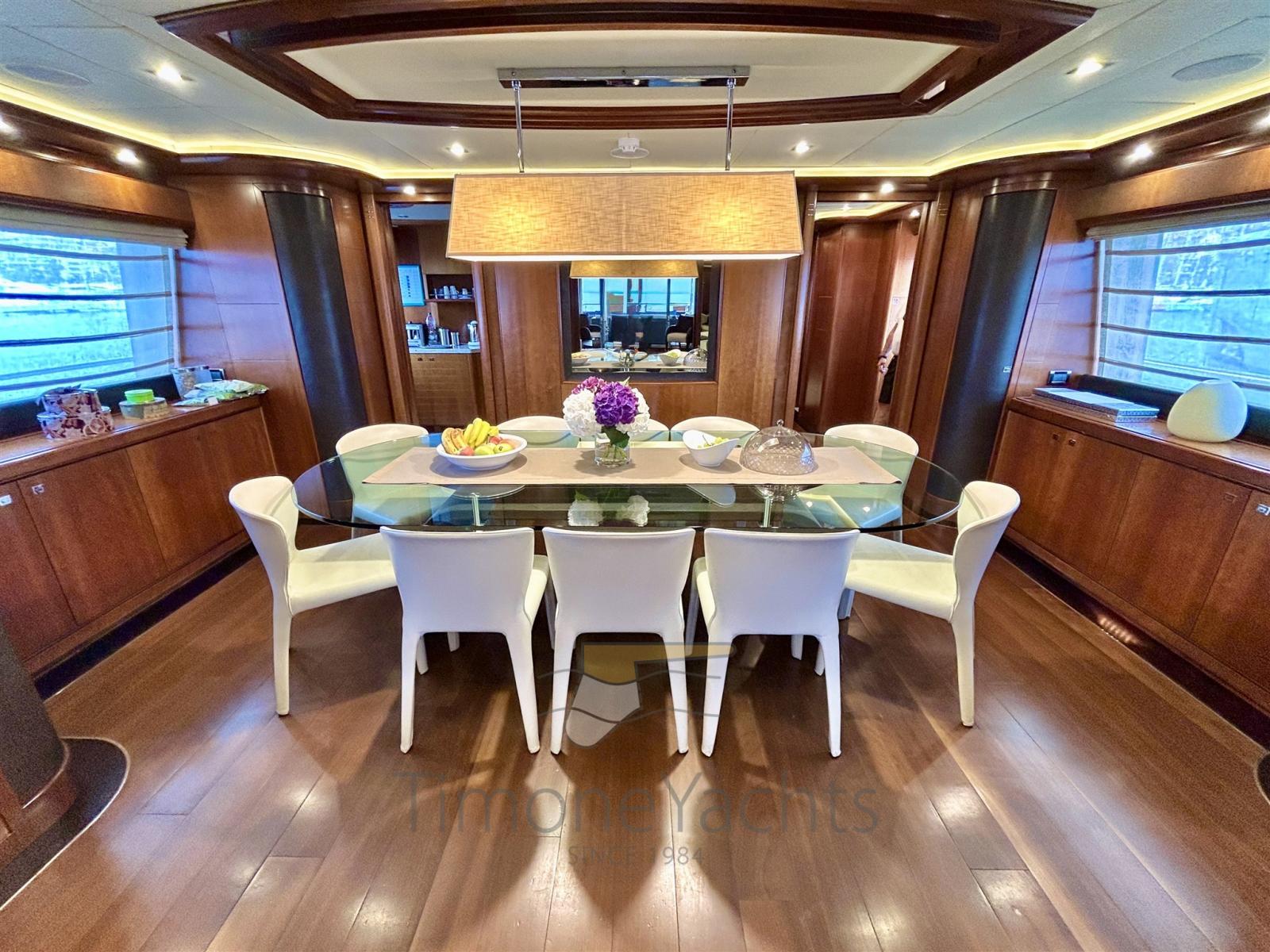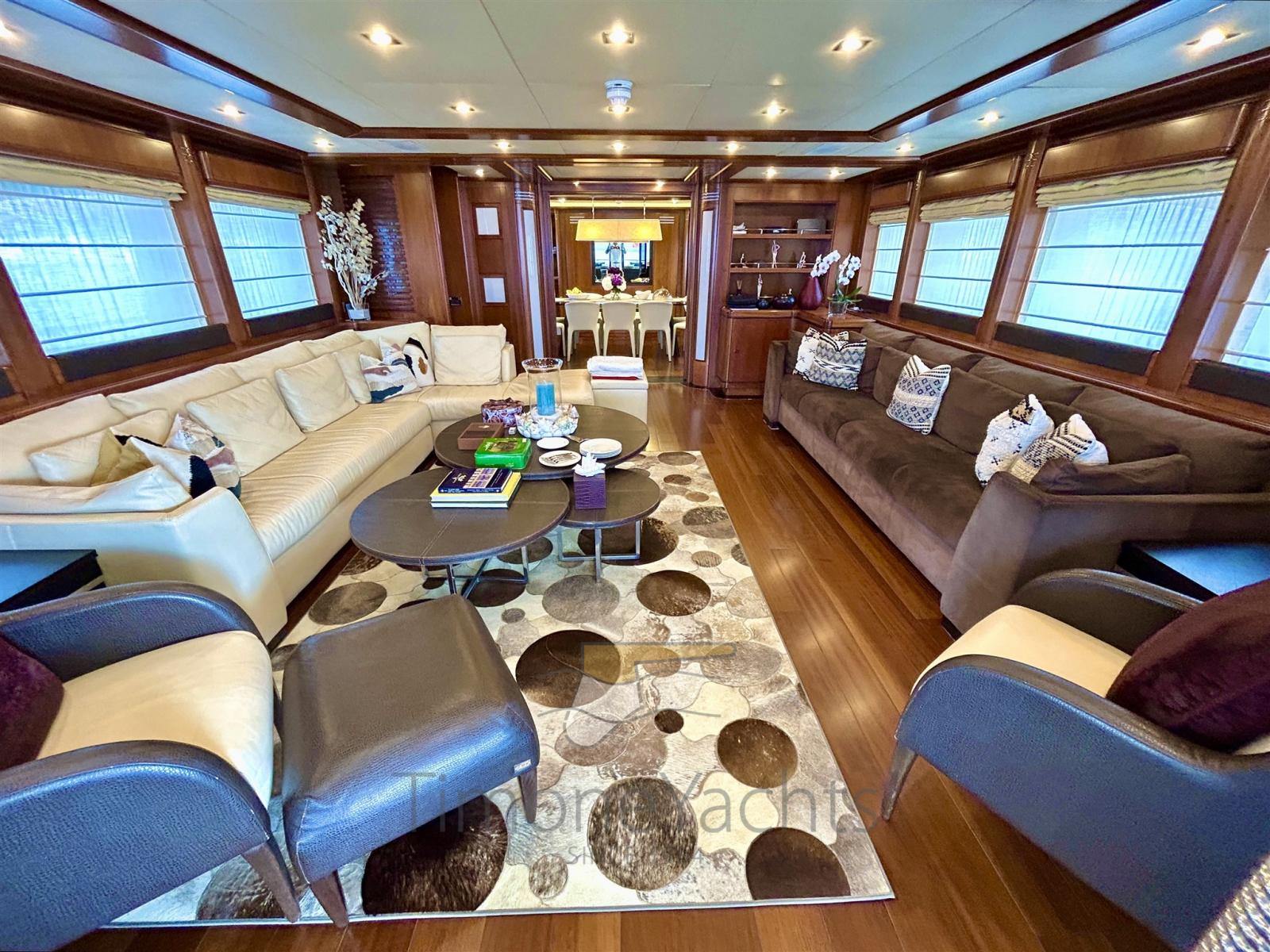 Alarme gaz, Alarme moteur, Alarme de pompe de cale, Alternateur, Eau sous pression (Gianneschi & Ramacciotti Jet 5188TE 230-400v 3F), Passavant en teck, Couleur spéciale, Filères, Flaps hydrauliques, Garage à annexe, Bossoirs pour annexe, Hard top, Extincteur(s) fixe(s), Indicateurs de flaps, Lavage de chaine, Passerelle, Pompe de cale automatique, Pont en teck, Porte latérale, Porte latérale, Cockpit en teck, Prise de quai, Connexion eau sous pression à quai, Guindeau électrique, 5 Stabilisateurs (Gyro stabilizer Mitsubishi), table de cockpit, Annexe, Corne, Winch électrique arrière, Winch électrique avant.