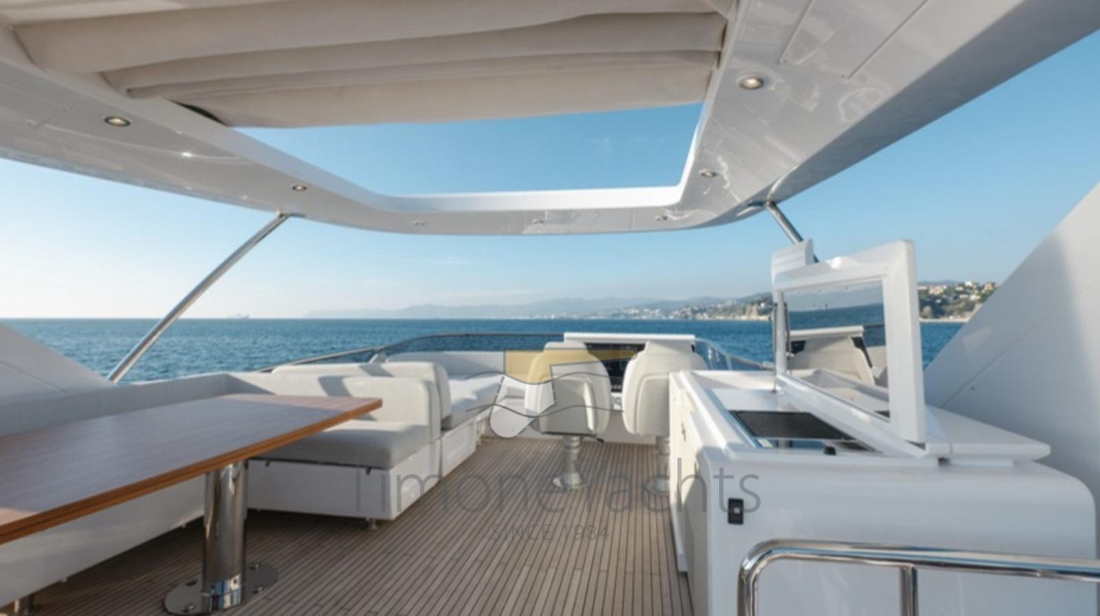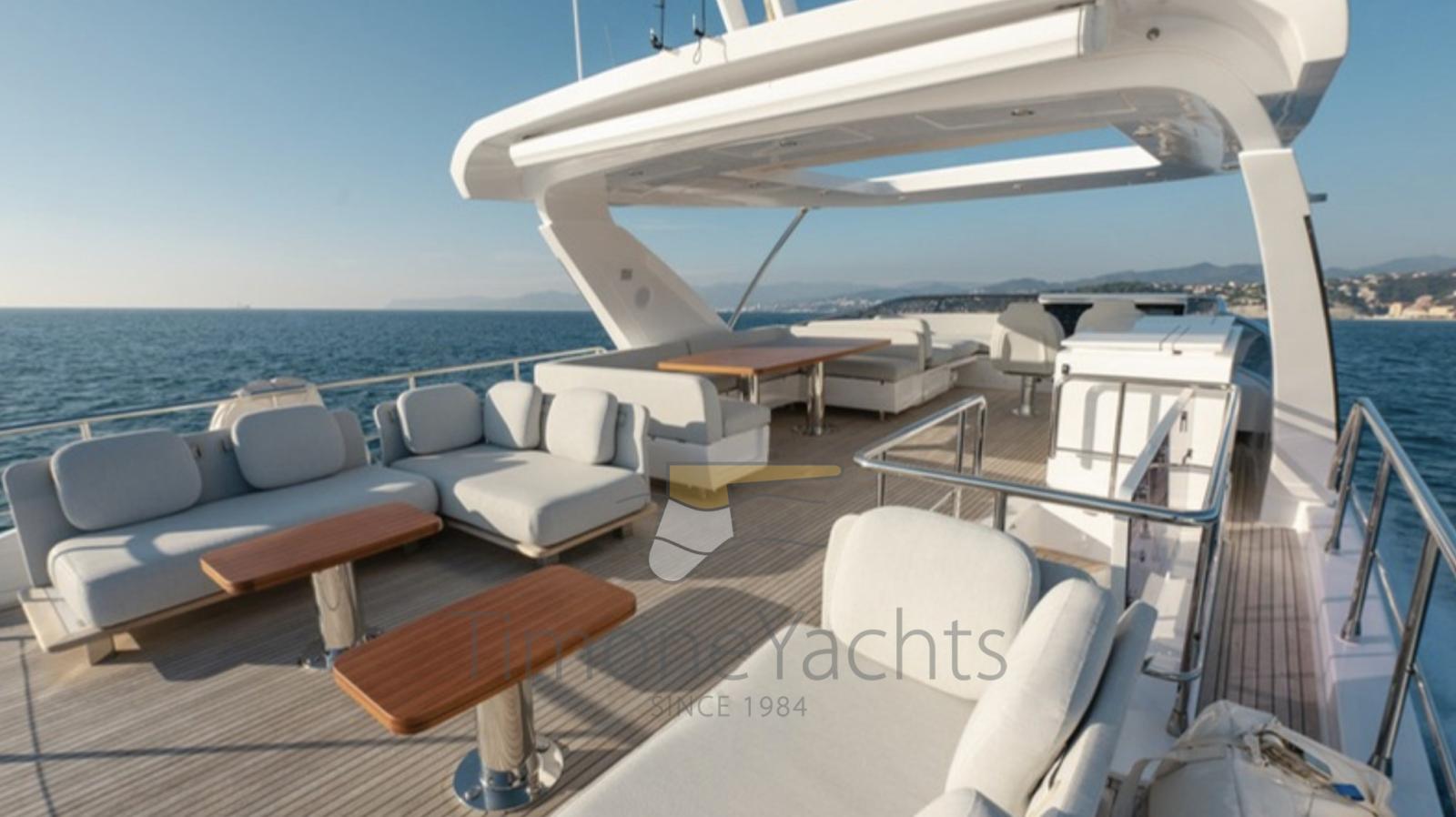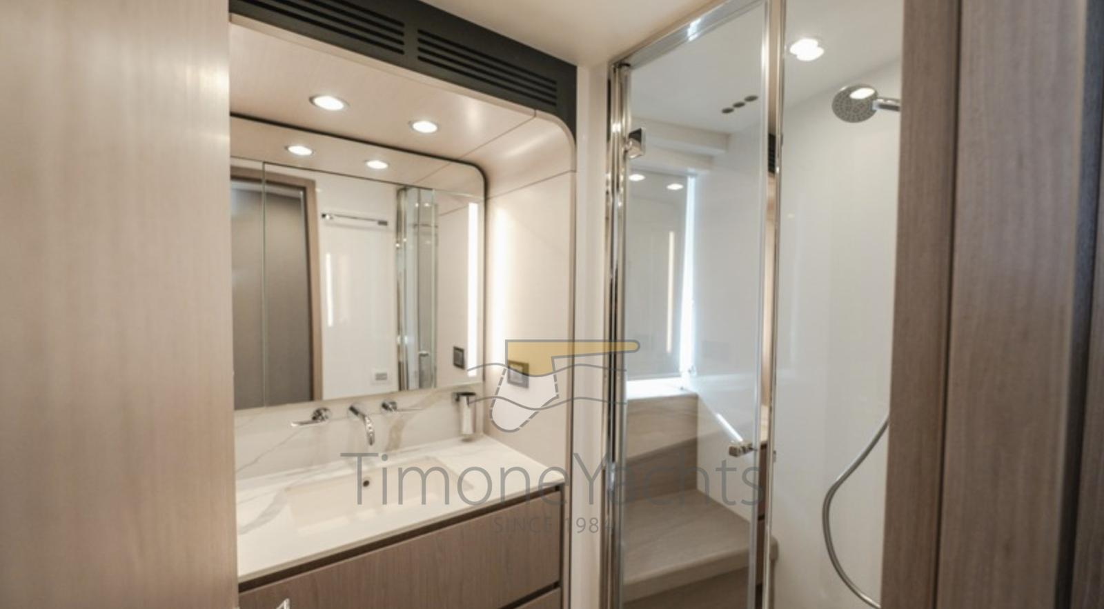 Alarme gaz, Alarme moteur, Alarme de pompe de cale, Alternateur, Auto Dynamic Trim Interceptor, Eau sous pression, Passavant en teck, Câble d’alimentation à quai, Douche de cockpit, Double barre à roue, Flaps électriques, Hard top, Indicateurs de flaps, Lavage de chaine, Lavabo dans le cockpit, Éclairage de courtoisie, Spots sous-marins, Défenses, Passerelle, Plateforme arrière, Pompe de cale automatique, Pont en teck, Porte latérale, Porte latérale, Cockpit en teck, Prise de quai, Connexion eau sous pression à quai, Guindeau électrique, Echelle de bain, Stabilisateurs (Seakeeper 18), table de cockpit, Annexe (Tender 3.9m, 5 seater Technorib PIRELLI J39), Filières avec sortie latèrale, Corne, Winch électrique arrière, Winch électrique avant.