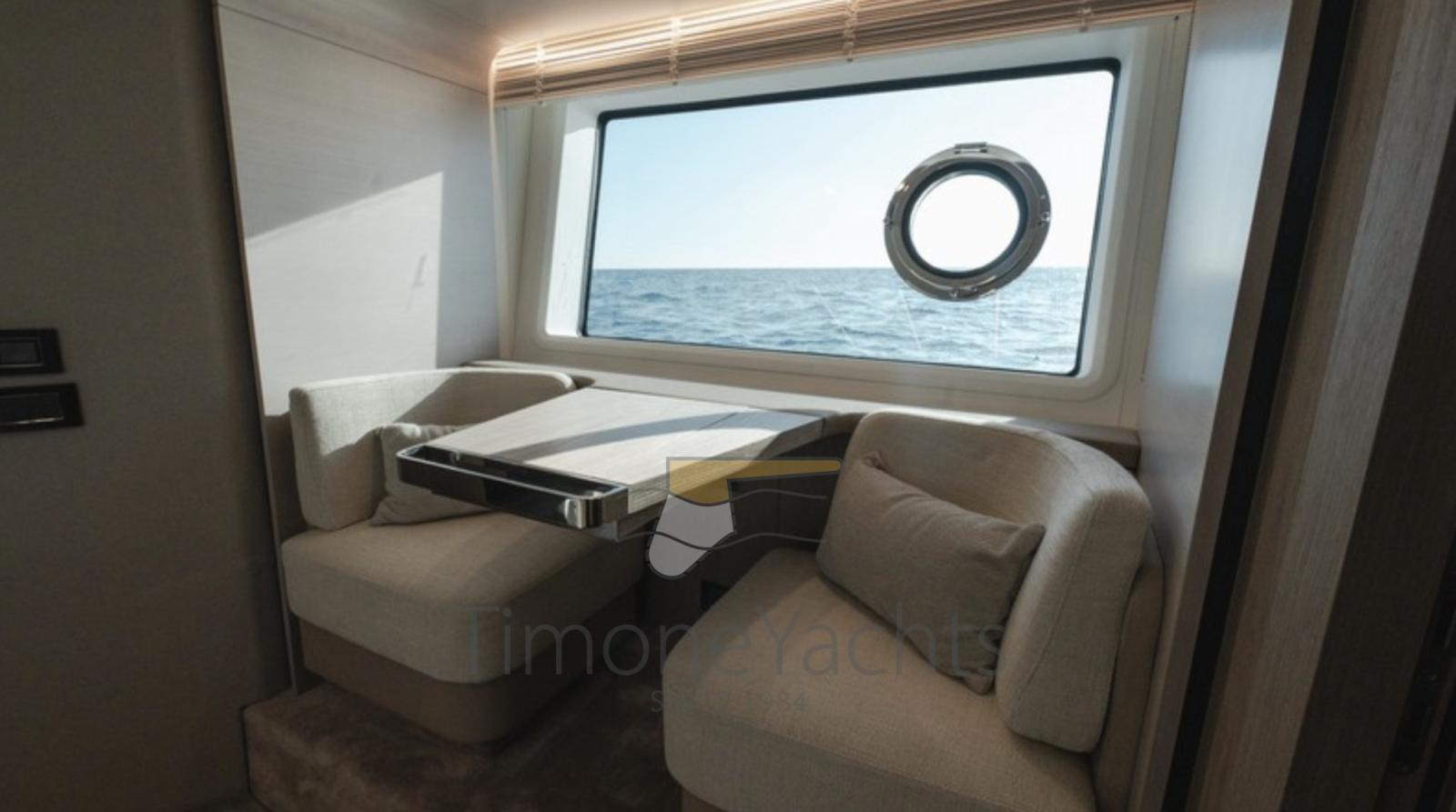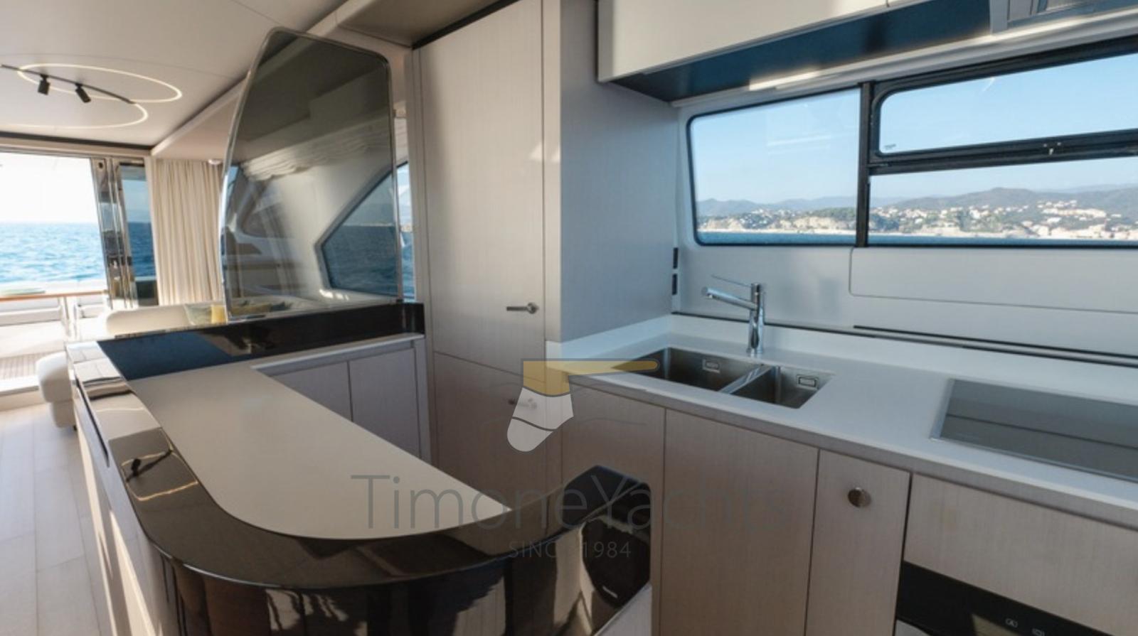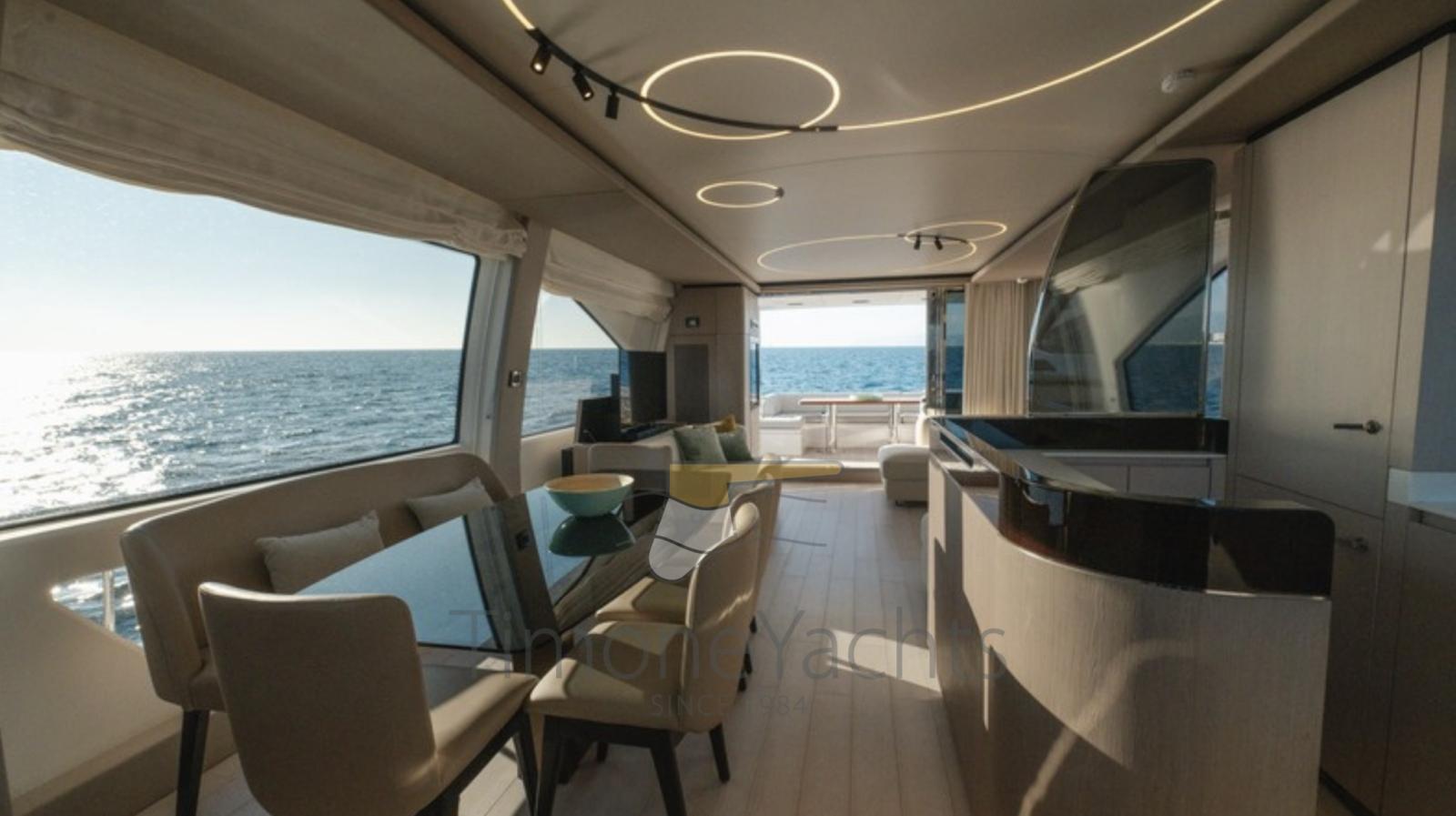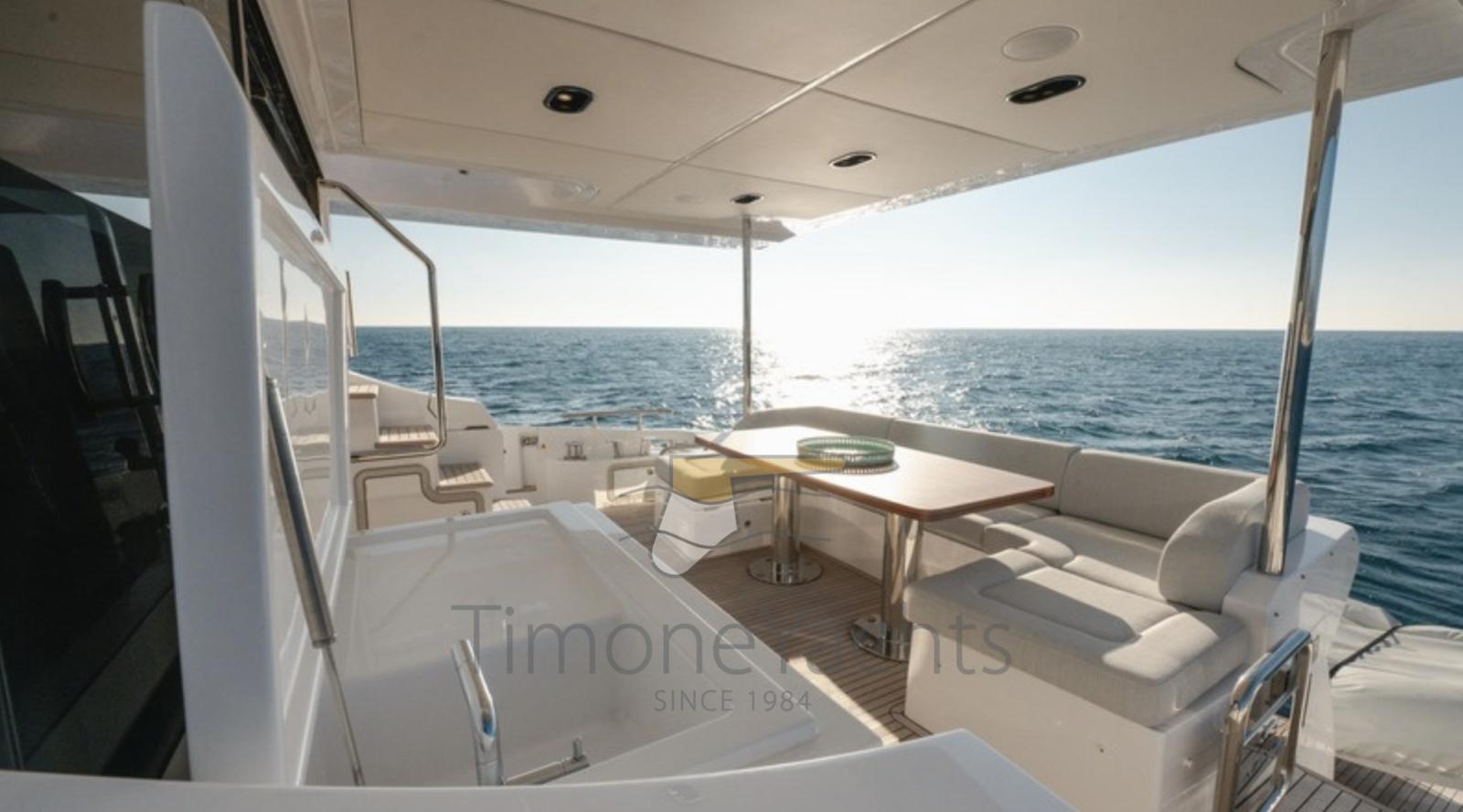 Alarme gaz, Alarme moteur, Alarme de pompe de cale, Alternateur, Auto Dynamic Trim Interceptor, Eau sous pression, Passavant en teck, Câble d’alimentation à quai, Douche de cockpit, Double barre à roue, Flaps électriques, Hard top, Indicateurs de flaps, Lavage de chaine, Lavabo dans le cockpit, Éclairage de courtoisie, Spots sous-marins, Défenses, Passerelle, Plateforme arrière, Pompe de cale automatique, Pont en teck, Porte latérale, Porte latérale, Cockpit en teck, Prise de quai, Connexion eau sous pression à quai, Guindeau électrique, Echelle de bain, Stabilisateurs (Seakeeper 18), table de cockpit, Annexe (Tender 3.9m, 5 seater Technorib PIRELLI J39), Filières avec sortie latèrale, Corne, Winch électrique arrière, Winch électrique avant.