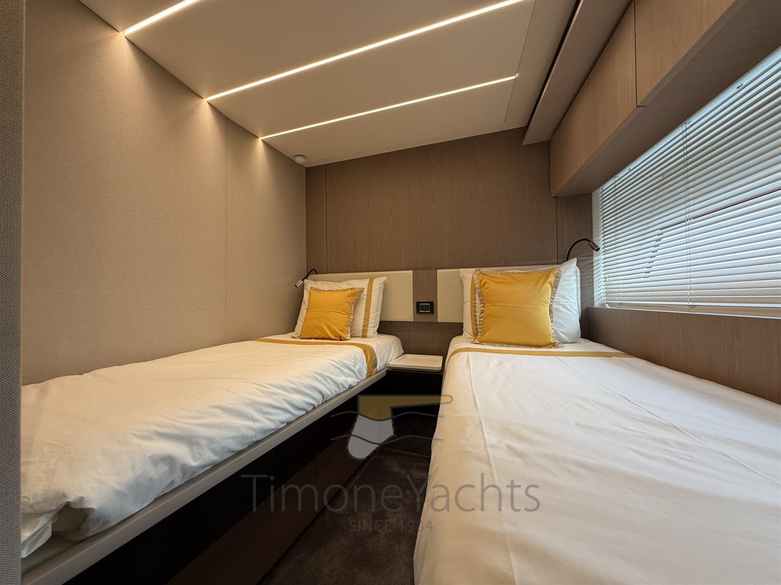 Intérieurs accueillants, 4 cabines invités + équipage, flybridge équipé et espaces conçus pour vivre la mer avec confort et classe.