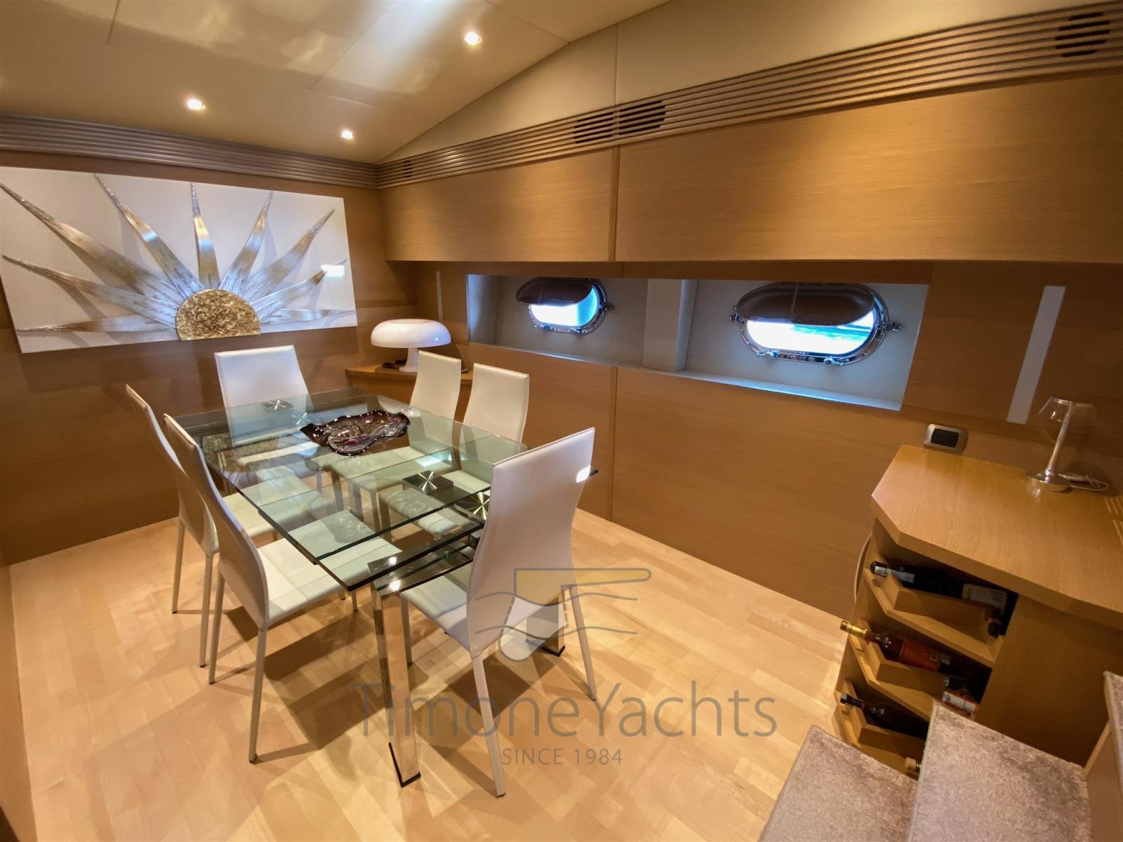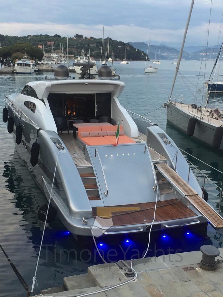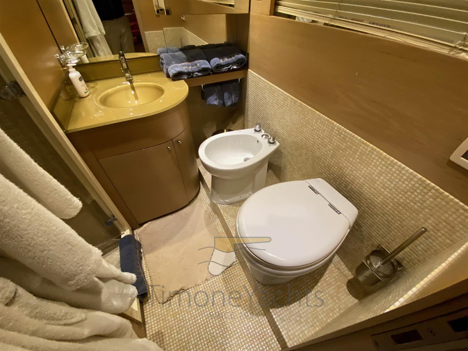 la cabine principale au milieu des navires avec vanité et vestiaire et deux cabines VIP avec salle de bains aussi, (toutes) décorées de mosaïques et équipées de bidet. En avant, sous la cuisine / salle à manger, nous obtenons un énorme rangement de plain-pied. La décoration est fraîche et moderne, avec des menuiseries en chêne clair et des garnitures wengé' ainsi que du parquet. Le bateau dispose d’une liste très longue d’extras, y compris à titre d’exemple: double générateur 220v (20Kw Kholer chacun), dessalinisateur, double antenne dôme SAT TV + TEL, traceur de cartes, radar à réseau ouvert et climatisation complète avec puissance « tropicale », système de divertissement complet avec TV 52 led up-down, décodeur satellite, etc. Quincaillerie de cuisine de Miele w / four traditionnel (ouverture de 90cm) + micro-ondes, deux réfrigérateurs verticaux de style maison, congélateur séparé, lave-vaisselle, machine à glaçons, coin lundry avec laveuse et sécheuse. L’état général parfait et clé en main, ainsi que l’utilisation légère, en plus d’une paire de moteurs Caterpillar puissants et fiables, mais pas extrêmes, en font une opportunité unique sur le marché, d’acheter un prestigieux yacht à moteur fabriqué à Viareggio pour une fraction d’un nouveau similaire! A noter : nouvelle sellerie intérieure à partir de 2019/2022, heures moteur légères, service constant chaque année, équipage professionnel toute l’année