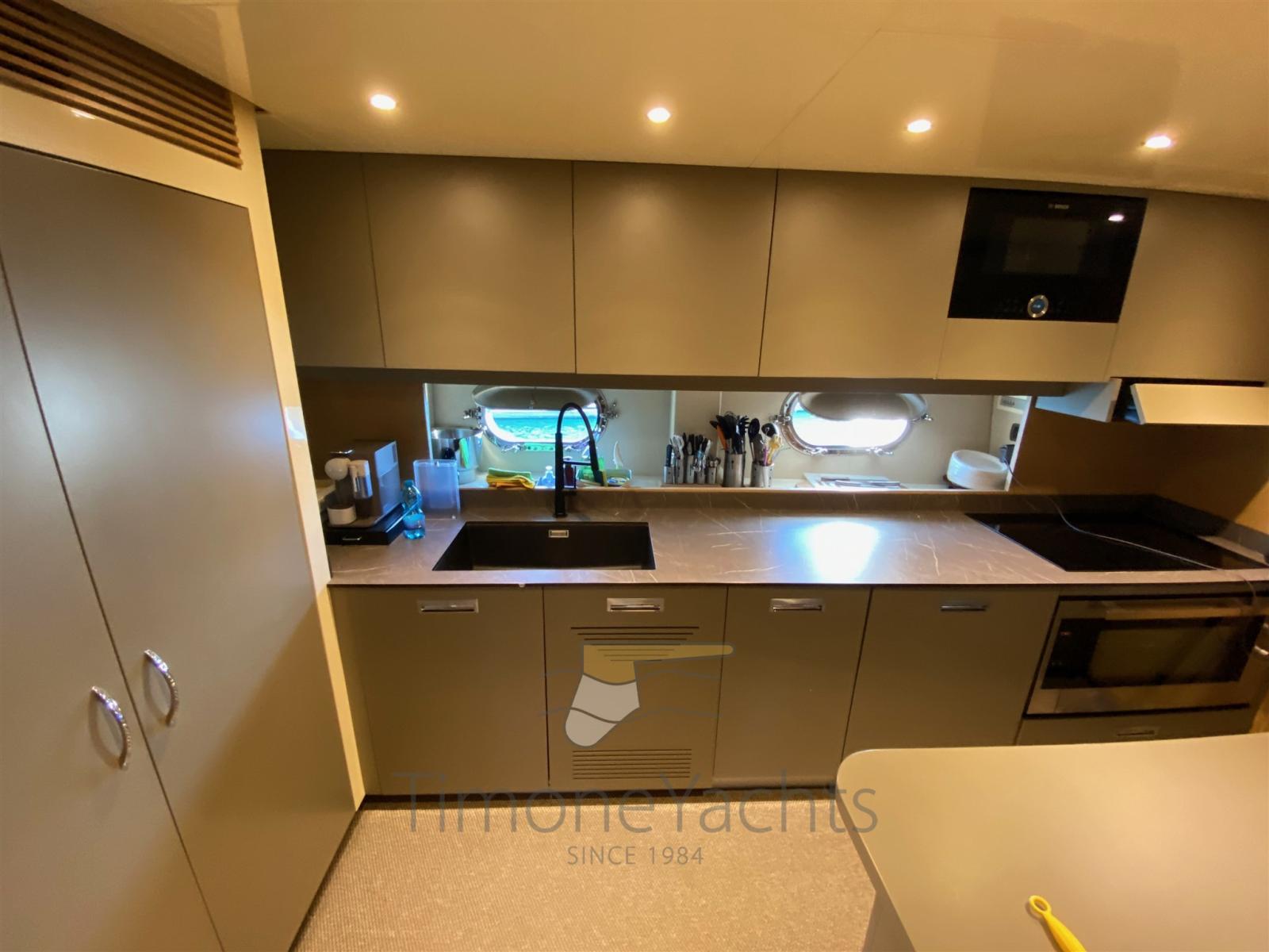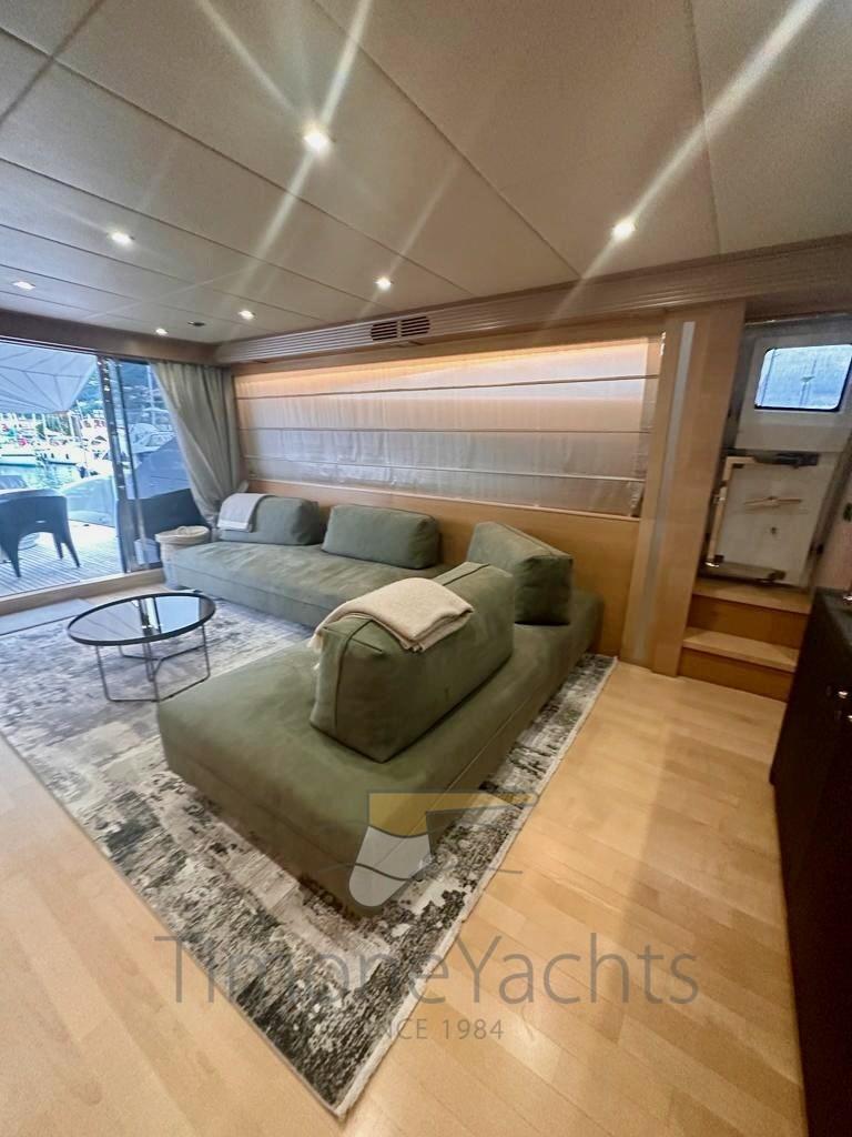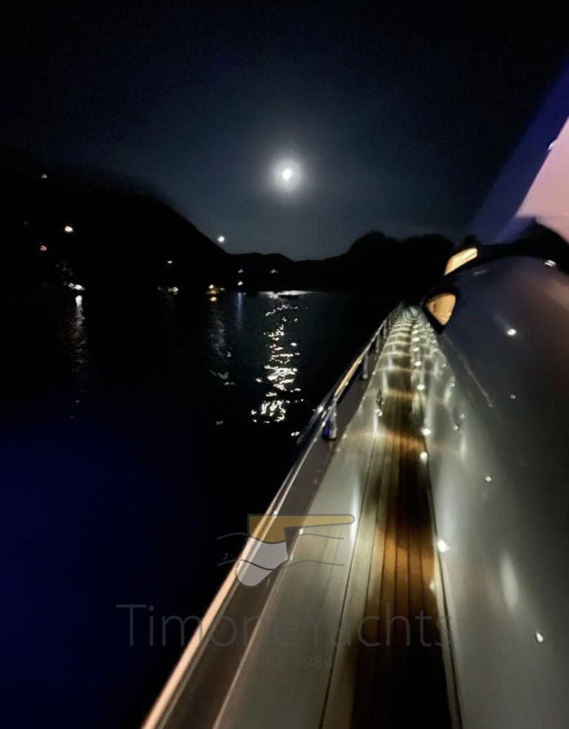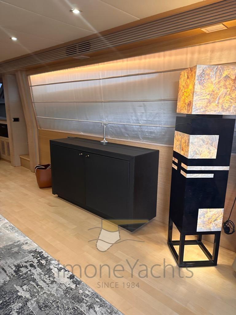 la cabine principale au milieu des navires avec vanité et vestiaire et deux cabines VIP avec salle de bains aussi, (toutes) décorées de mosaïques et équipées de bidet. En avant, sous la cuisine / salle à manger, nous obtenons un énorme rangement de plain-pied. La décoration est fraîche et moderne, avec des menuiseries en chêne clair et des garnitures wengé' ainsi que du parquet. Le bateau dispose d’une liste très longue d’extras, y compris à titre d’exemple: double générateur 220v (20Kw Kholer chacun), dessalinisateur, double antenne dôme SAT TV + TEL, traceur de cartes, radar à réseau ouvert et climatisation complète avec puissance « tropicale », système de divertissement complet avec TV 52 led up-down, décodeur satellite, etc. Quincaillerie de cuisine de Miele w / four traditionnel (ouverture de 90cm) + micro-ondes, deux réfrigérateurs verticaux de style maison, congélateur séparé, lave-vaisselle, machine à glaçons, coin lundry avec laveuse et sécheuse. L’état général parfait et clé en main, ainsi que l’utilisation légère, en plus d’une paire de moteurs Caterpillar puissants et fiables, mais pas extrêmes, en font une opportunité unique sur le marché, d’acheter un prestigieux yacht à moteur fabriqué à Viareggio pour une fraction d’un nouveau similaire! A noter : nouvelle sellerie intérieure à partir de 2019/2022, heures moteur légères, service constant chaque année, équipage professionnel toute l’année