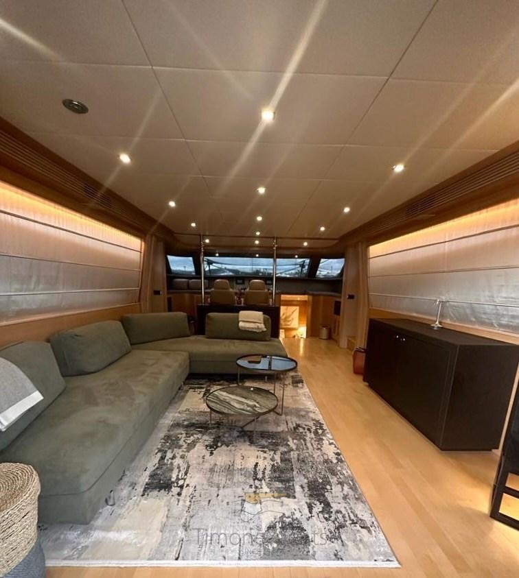Taquets pliants, Passavant en teck, Douche de cockpit, Phare de poursuite, Flaps hydrauliques, Garage à annexe, Hard top, Extincteur(s) fixe(s), Indicateurs de flaps, Lavage de chaine, Spots sous-marins, Passerelle, 2 Porte latérale, Cockpit en teck, Prise de quai, Connexion eau sous pression à quai, table de cockpit, Corne, 2 Winch électrique arrière, Winch électrique avant.