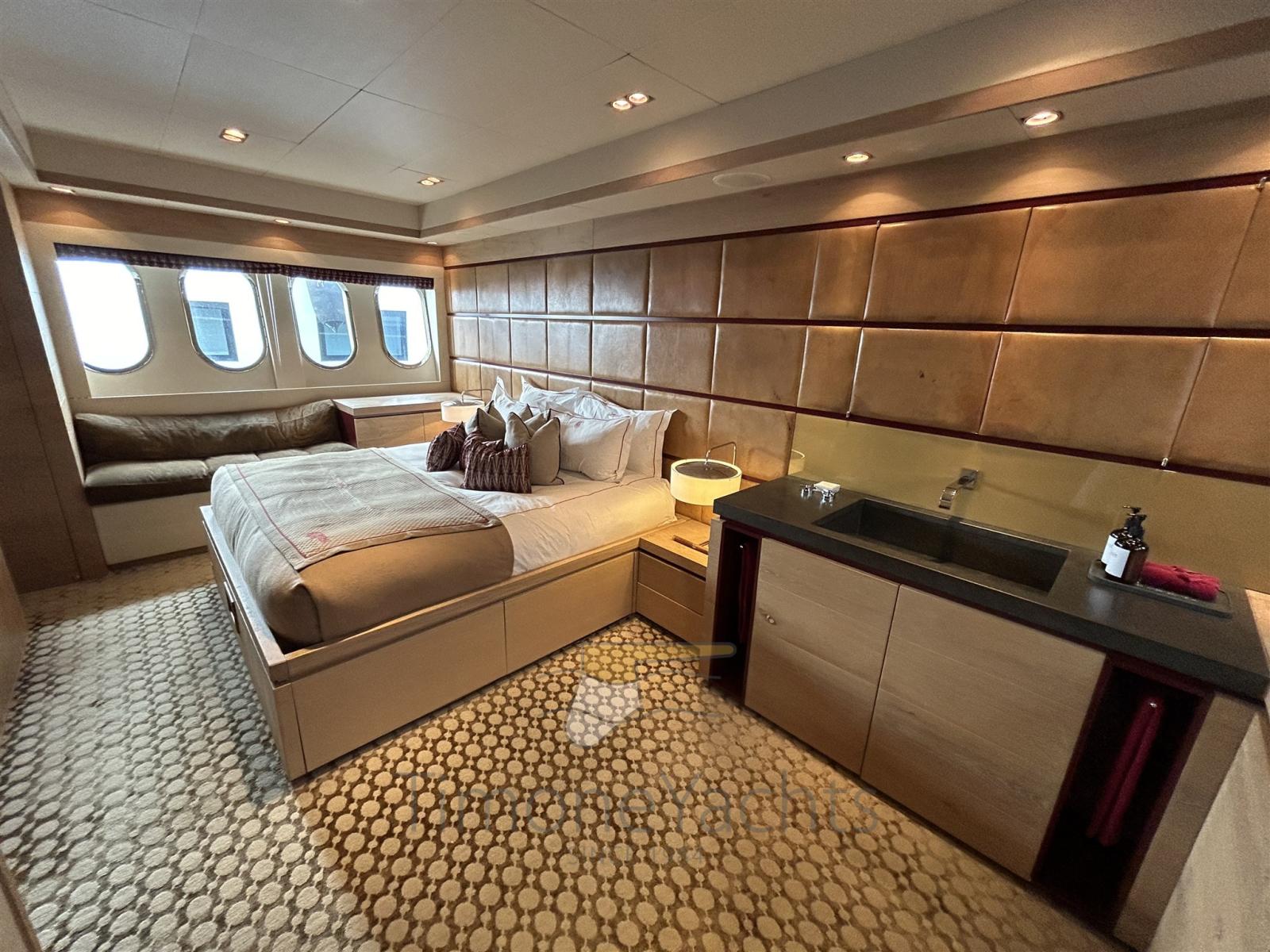 L’intérieur raffiné comprend cinq cabines luxueuses pouvant accueillir jusqu’à 10 personnes + 2 invités, avec un salon élégant conçu pour un confort ultime. Les espaces extérieurs spacieux comprennent un grand cockpit et des zones de bronzage, parfaites pour la détente et la socialisation.