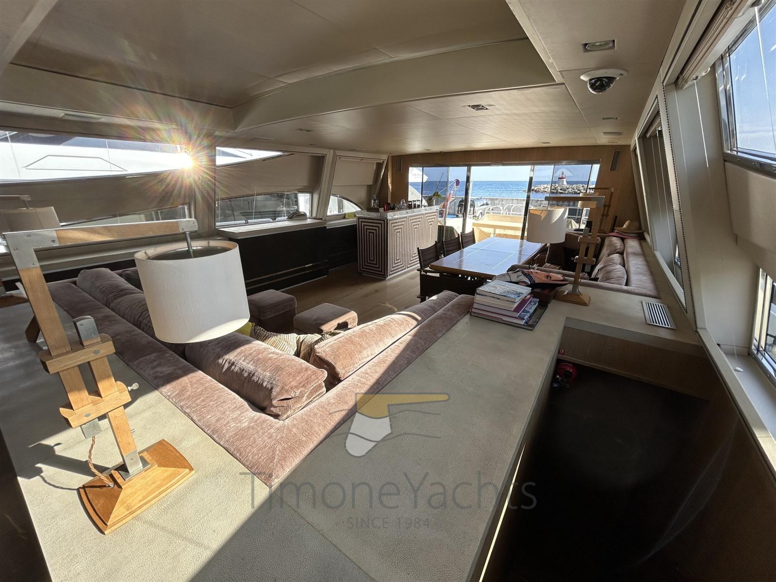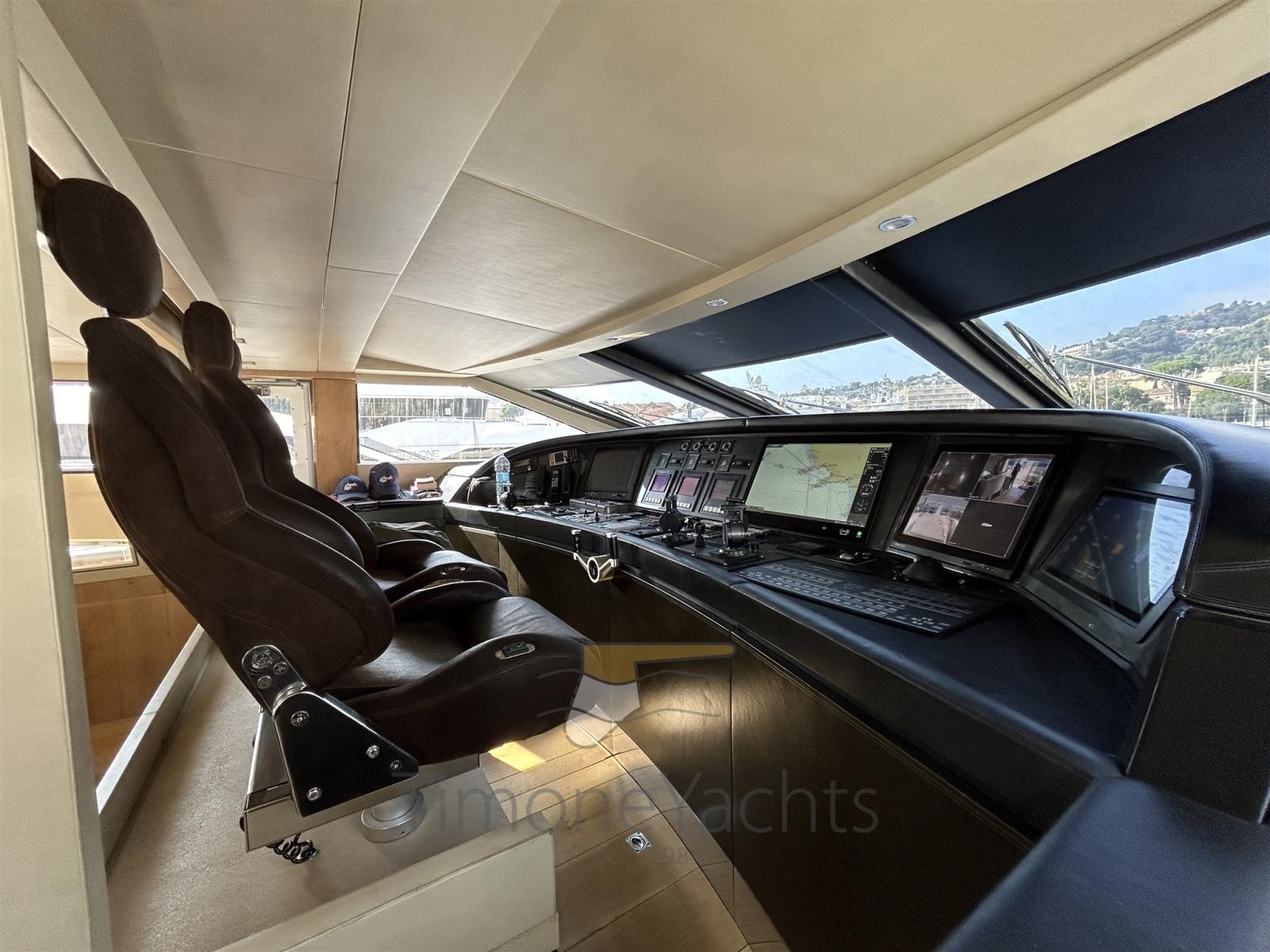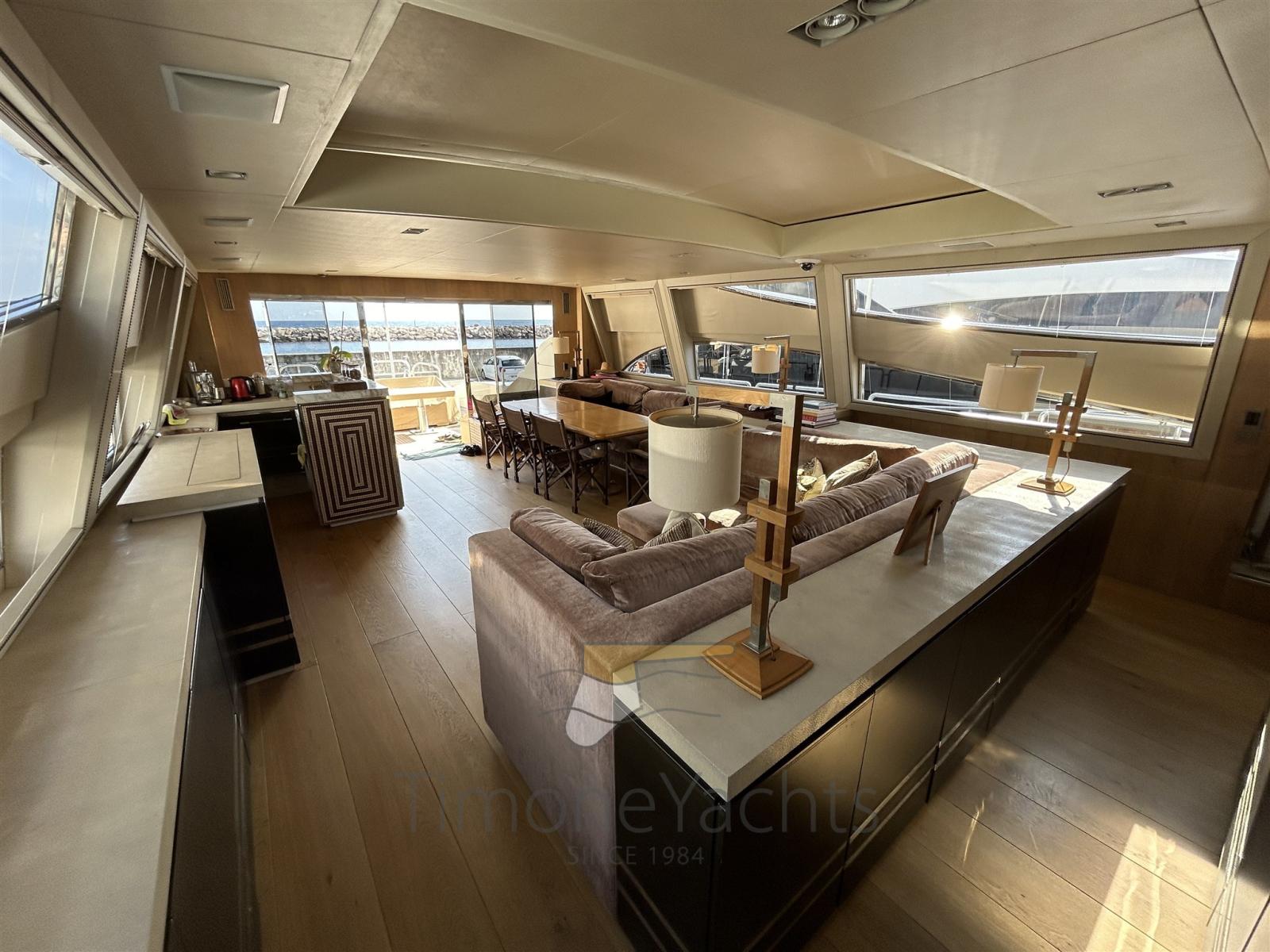 Trim hydraulique, Passavant en teck, Douche de cockpit, Phare de poursuite, Flaps hydrauliques, Garage à annexe, Hard top, Extincteur(s) fixe(s), Indicateurs de flaps, Éclairage de courtoisie, Spots sous-marins, Jet-ski, Passerelle, Porte latérale, Porte latérale, Cockpit en teck, Prise de quai, Echelle de bain, table de cockpit, Corne, Winch électrique arrière.