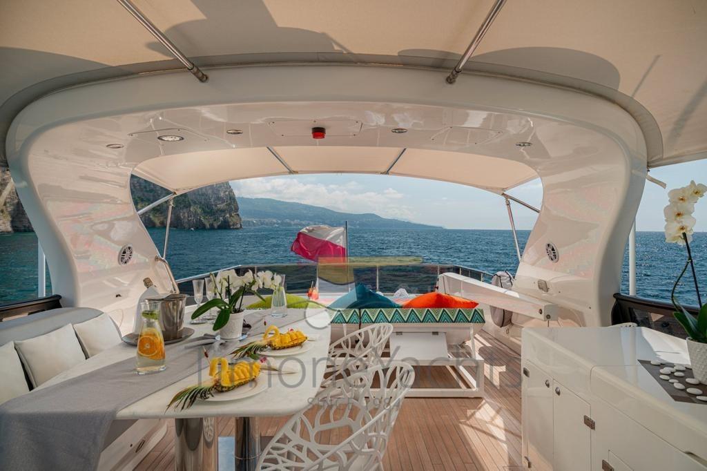 Alarme gaz, Alarme moteur, Alarme de pompe de cale, Eau sous pression, Passavant en teck, Douche de cockpit, Phare de poursuite, Flaps hydrauliques, Grue de flybridge, Indicateurs de flaps, Lavage de chaine, Passerelle (IRAULICA), Pompe de cale automatique, Porte latérale, Cockpit en teck, Prise de quai, Connexion eau sous pression à quai, Onduleur, Rollbar, Guindeau électrique, Echelle de bain, Stabilisateurs (Smart Gyro), table de cockpit, Annexe (new 2023: 3mt + 40 hp Suzuki), Corne, 2 Winch électrique arrière, 2 Winch électrique avant.