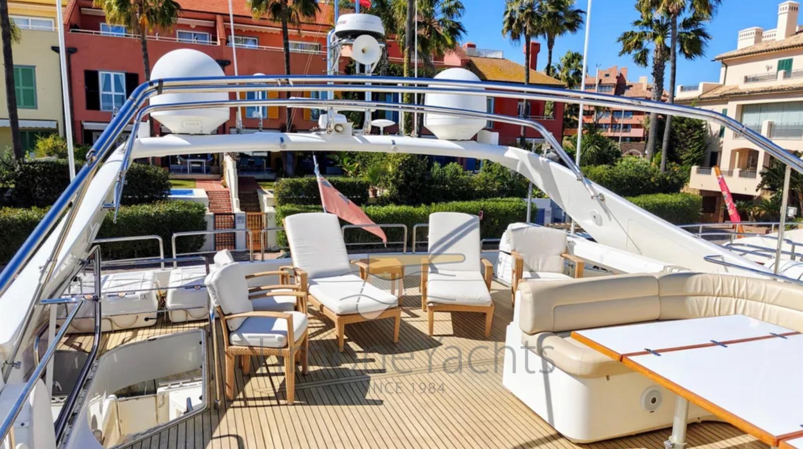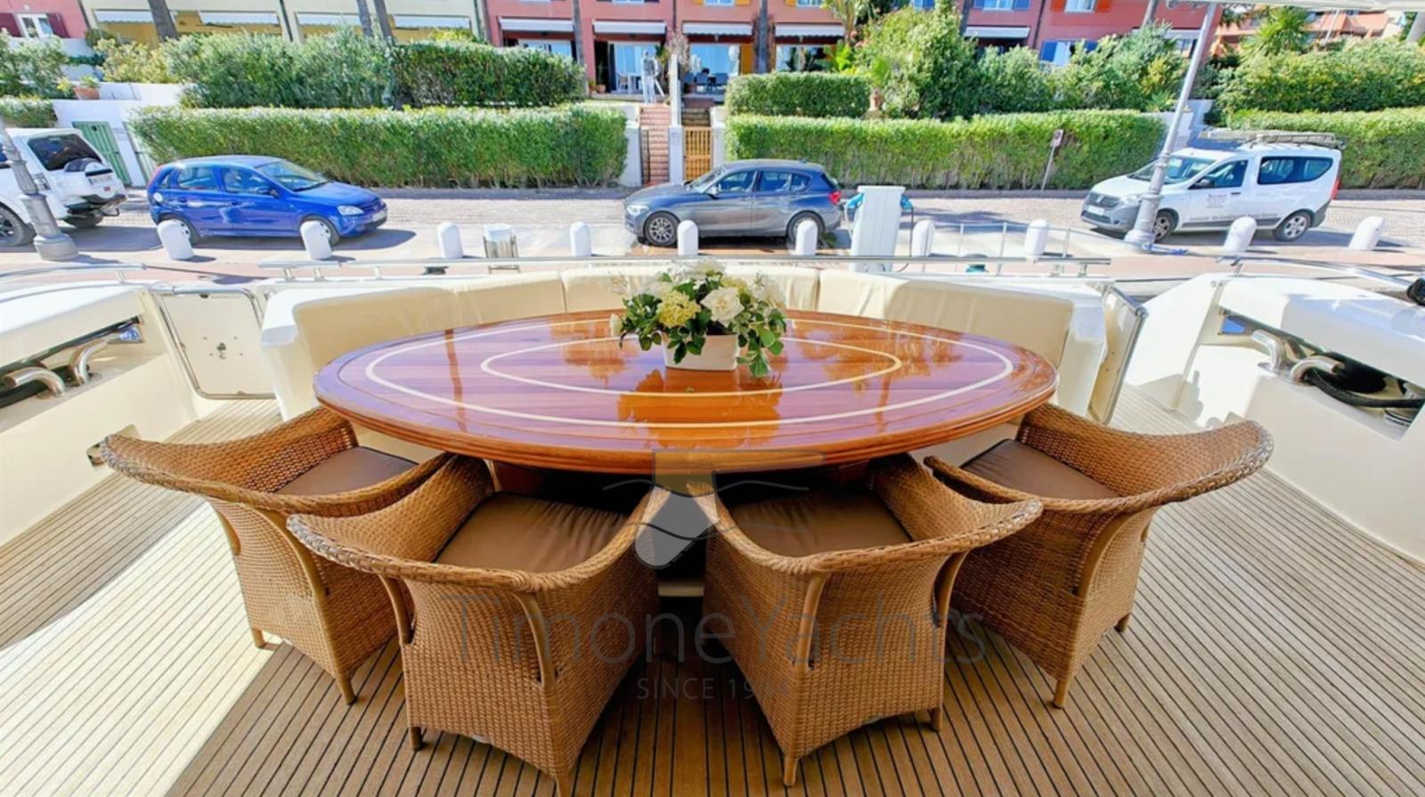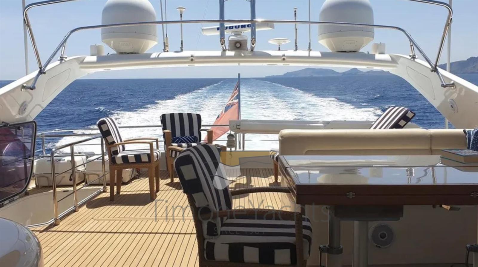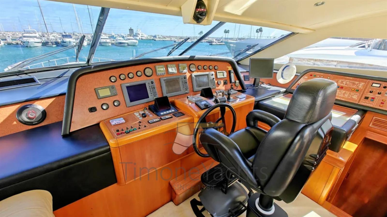 Eau sous pression, Passavant en teck, 3 Chargeur de batterie, Double barre à roue, Flaps hydrauliques, Garage à annexe, Bossoirs pour annexe, Hard top, Indicateurs de flaps, Lavage de chaine, Éclairage de courtoisie, Spots sous-marins, Passerelle, Porte latérale, Porte latérale, Cockpit en teck, Prise de quai, Connexion eau sous pression à quai, table de cockpit, Corne, Winch électrique arrière, Winch électrique avant.
