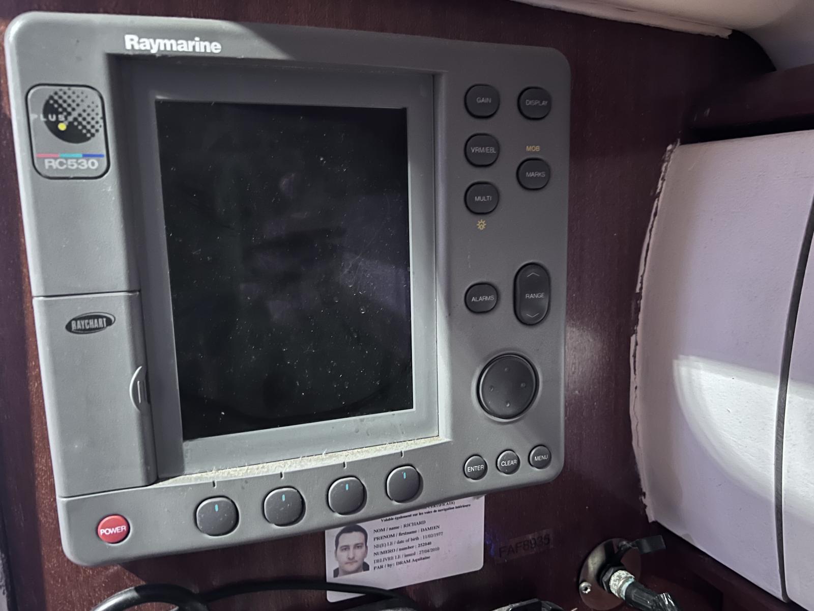 Electronique de base Raymarine (lecteur carte – sondeur avec clapet pour démontage dans coursive cabines avant – anémomètre, température de l’eau, etc…)