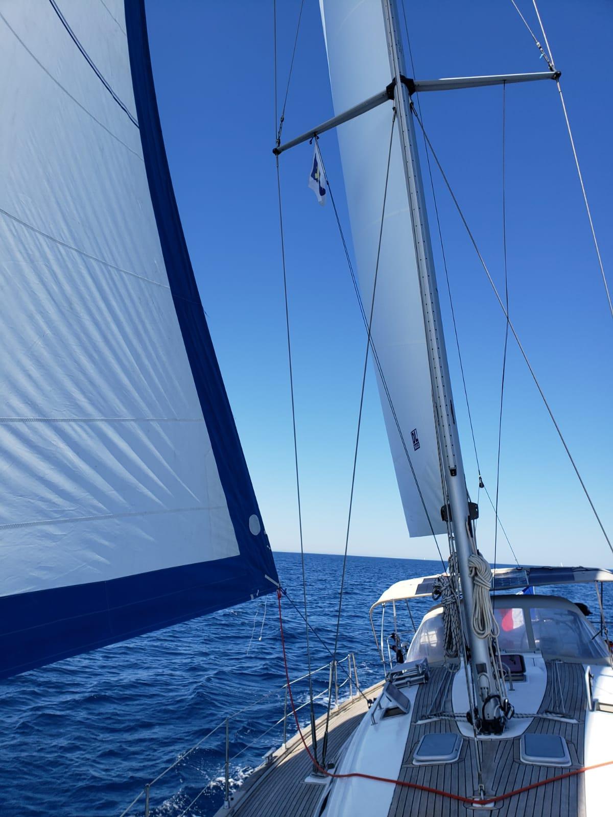 1 GV sur enrouleur de mat, 1 génois sur enrouleur et 1 Solent sur enrouleur neuf d’avril 2023 (kit réparation voile et kit couture voiles)
