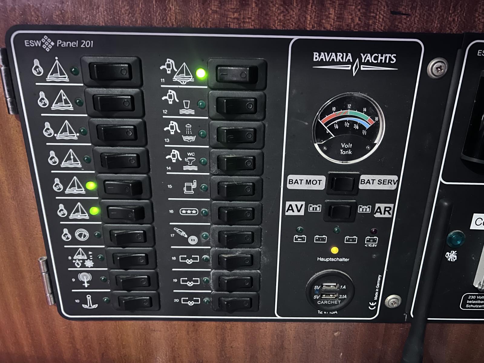 Tableau electrique à interrupteurs 12 et 220 V avec protection et prises USB