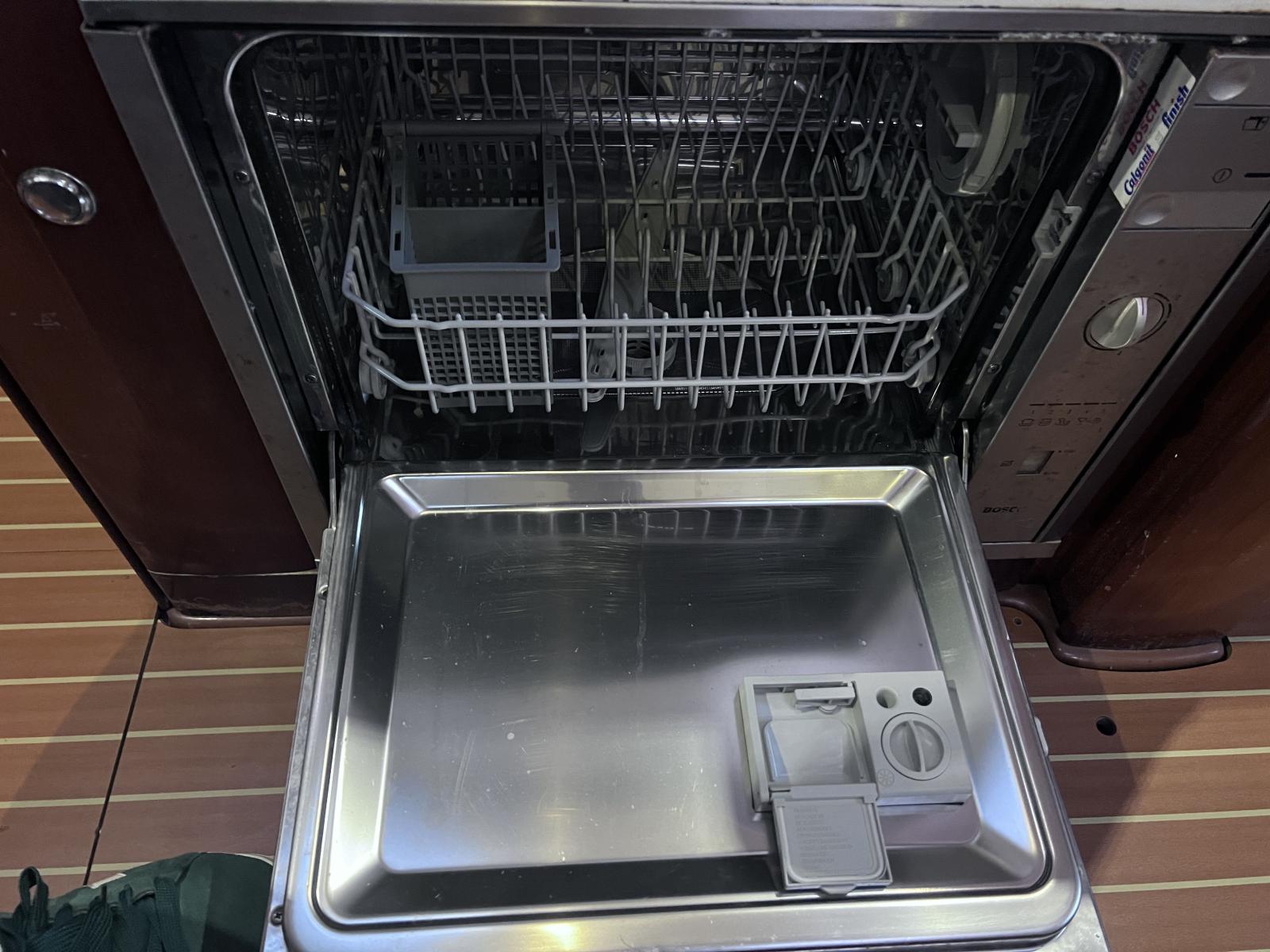 Une machine à laver la vaisselle (sur 220 V à faire fonctionner à quai uniquement (robinet ouverture eau dans placard à gauche de la machine)