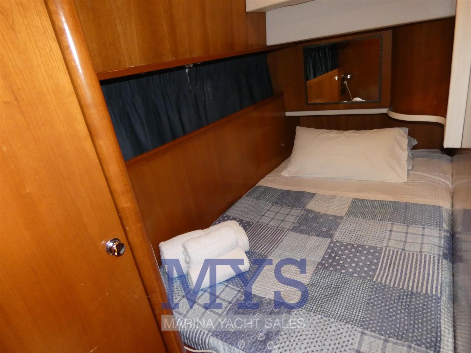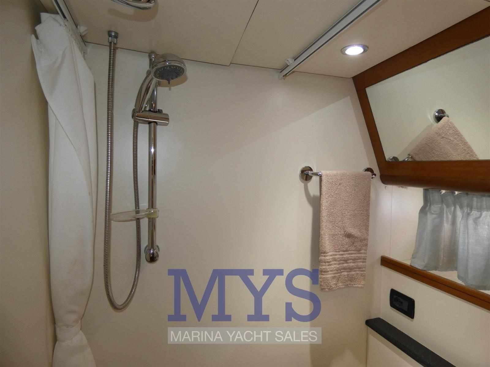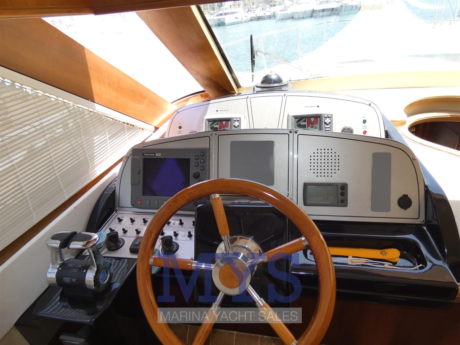 Alarme gaz, Alarme moteur, Alarme de pompe de cale, Eau sous pression, Couleur spéciale, Douche de cockpit, Flaps hydrauliques, Extincteur(s) fixe(s), Lavabo dans le cockpit, Éclairage de courtoisie, Passerelle, Plateforme arrière, Pompe de cale automatique, Pompe de cale manuelle, Pont en teck, Porte latérale, Cockpit en teck, Prise de quai, Rollbar, Guindeau électrique, Echelle de bain, Table pliante de salon, Corne.