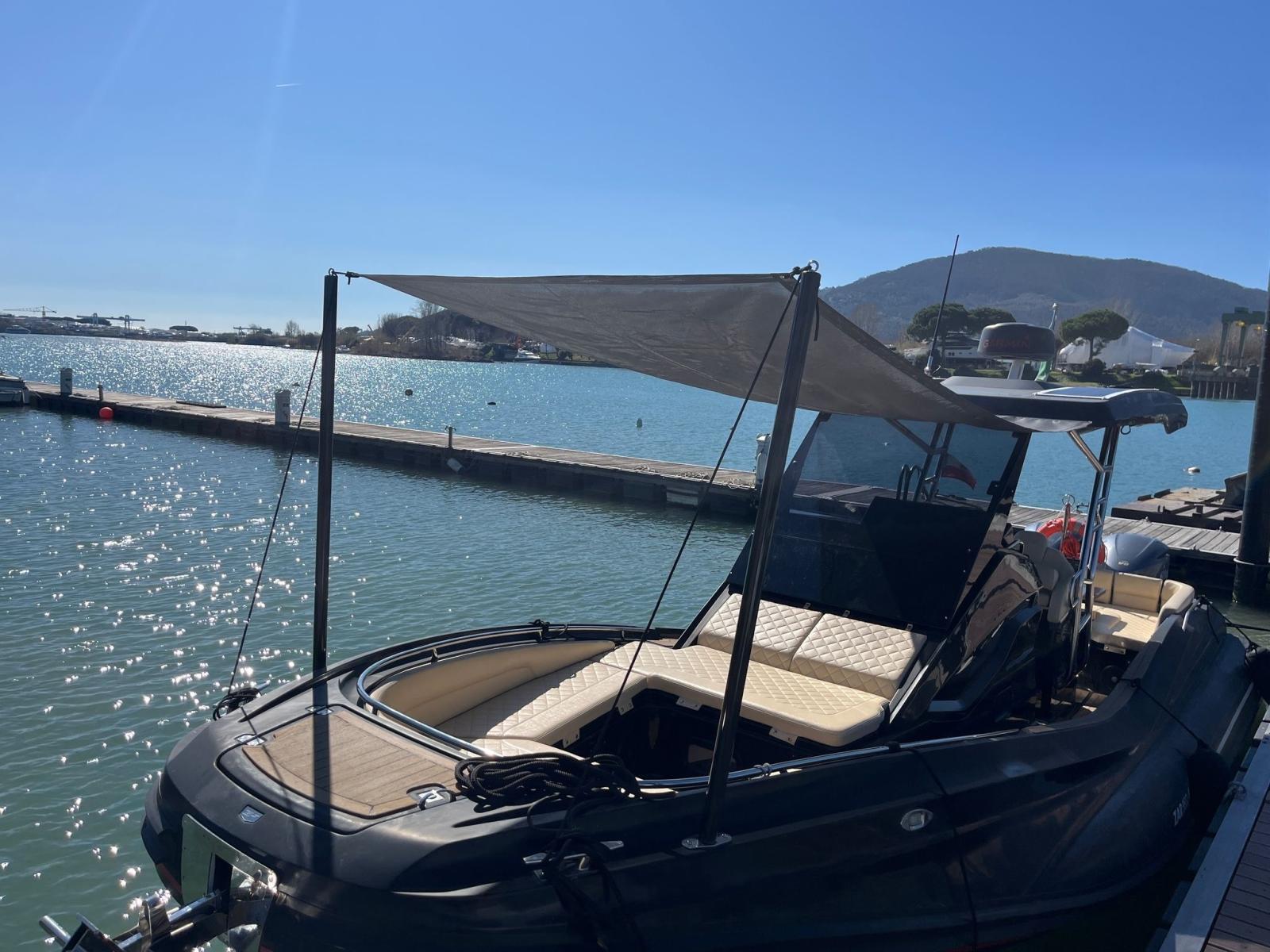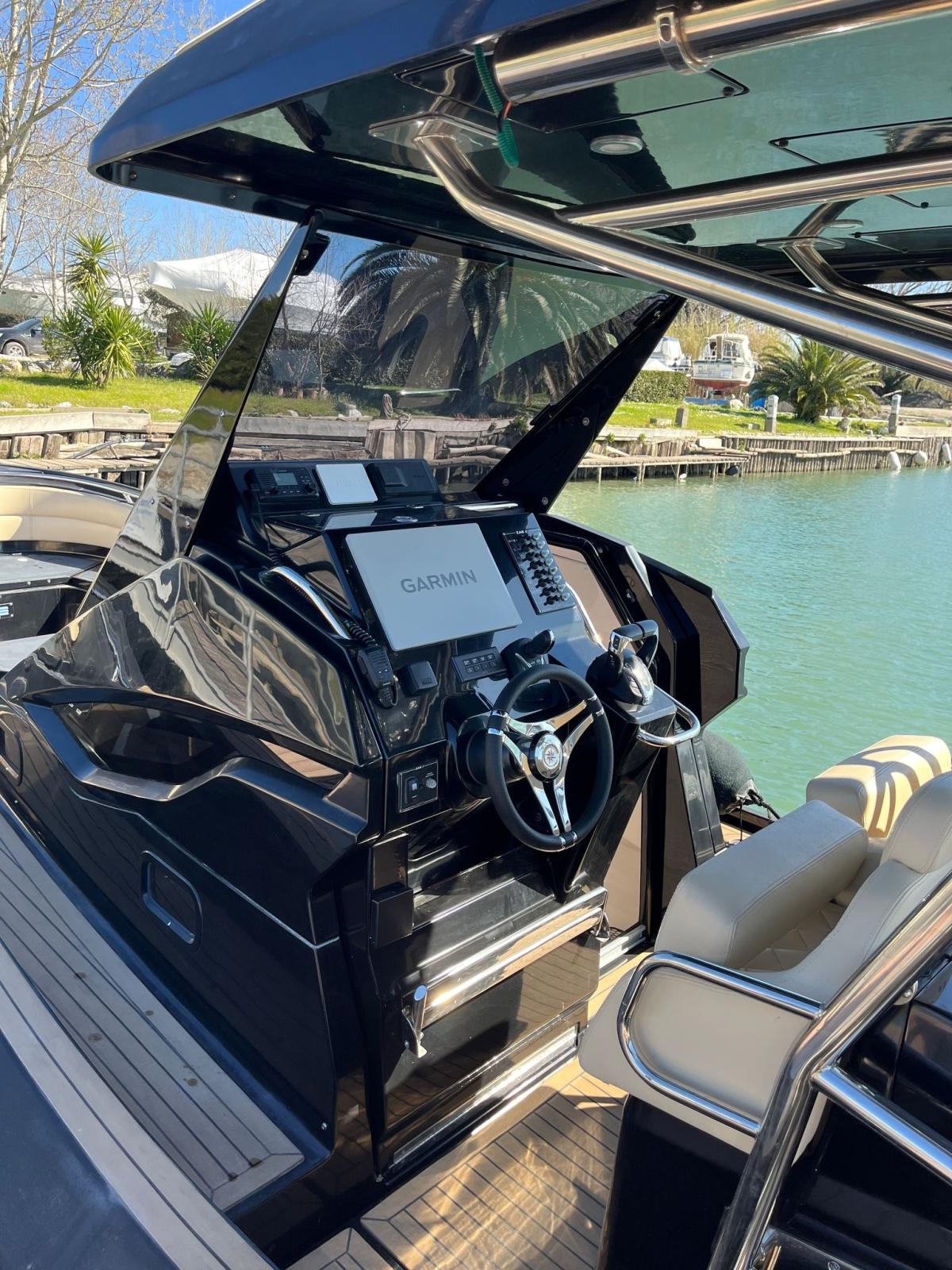 Eau sous pression, Douche de cockpit, Pompe de cale automatique, Prise de quai, Echelle de bain, table de cockpit (Elettrico), T-Top.