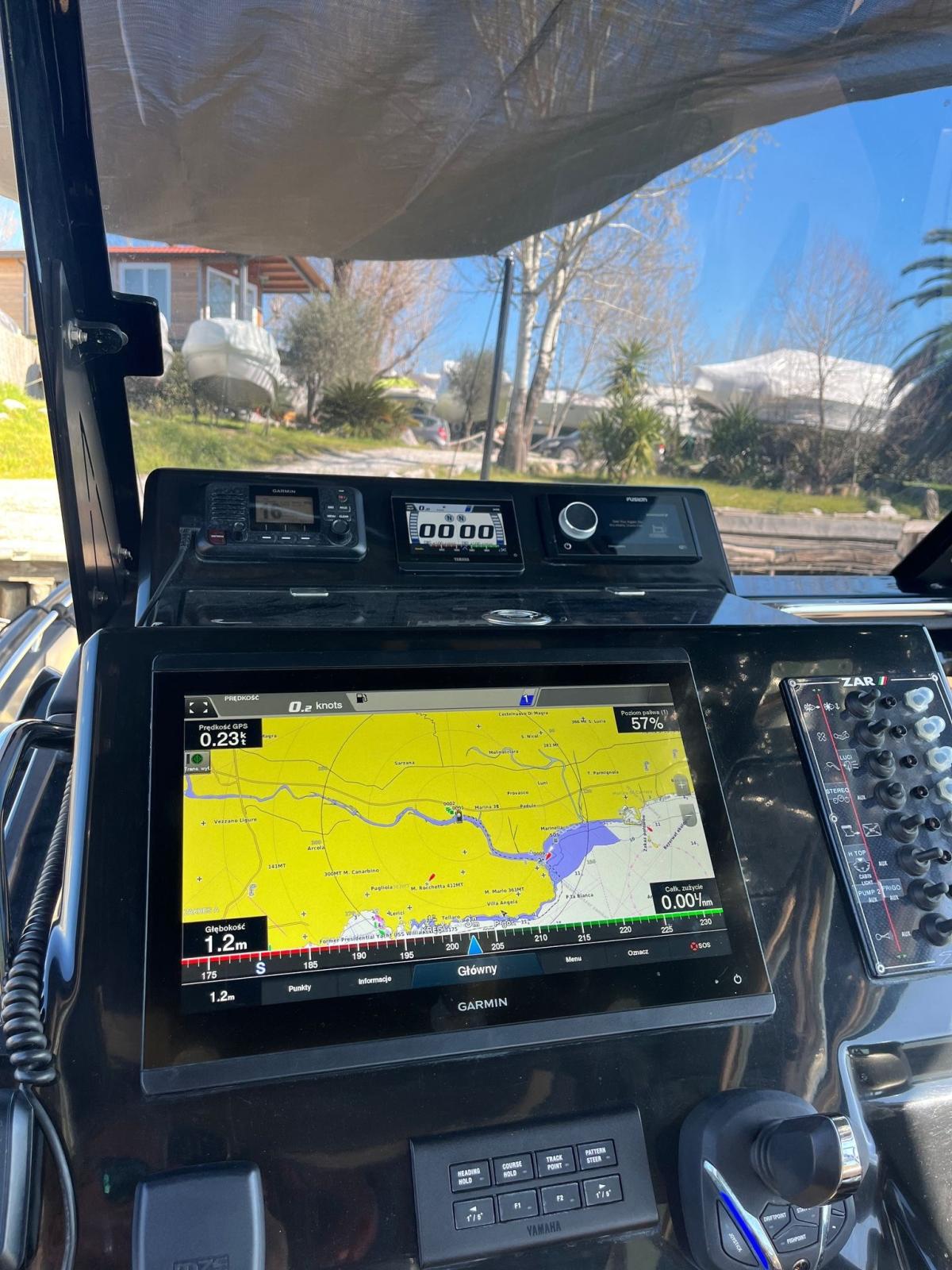 Ordinateur fixe de bord, Joystick, Lecteur de cartes (Garmin), Radar (Garmin).