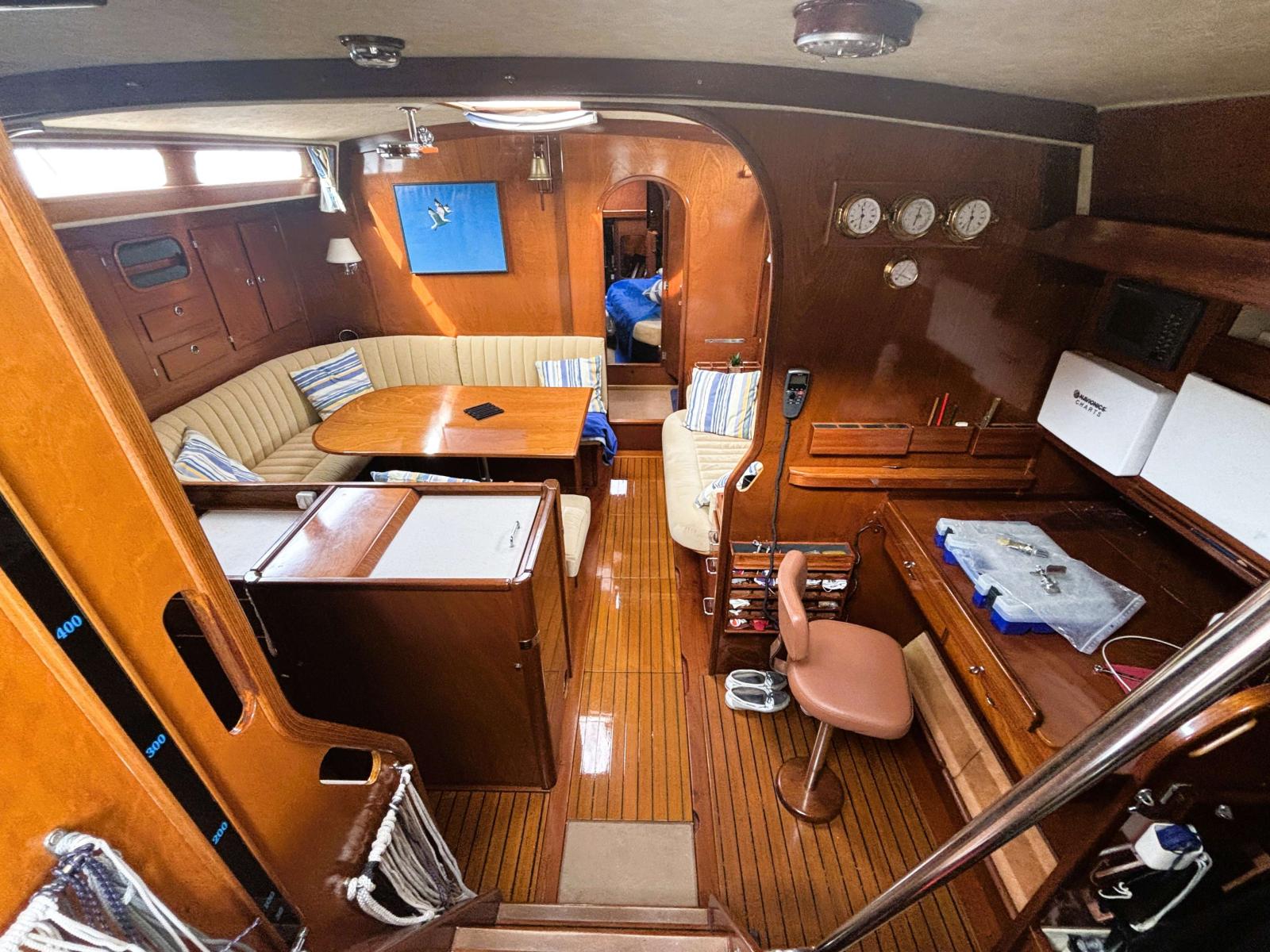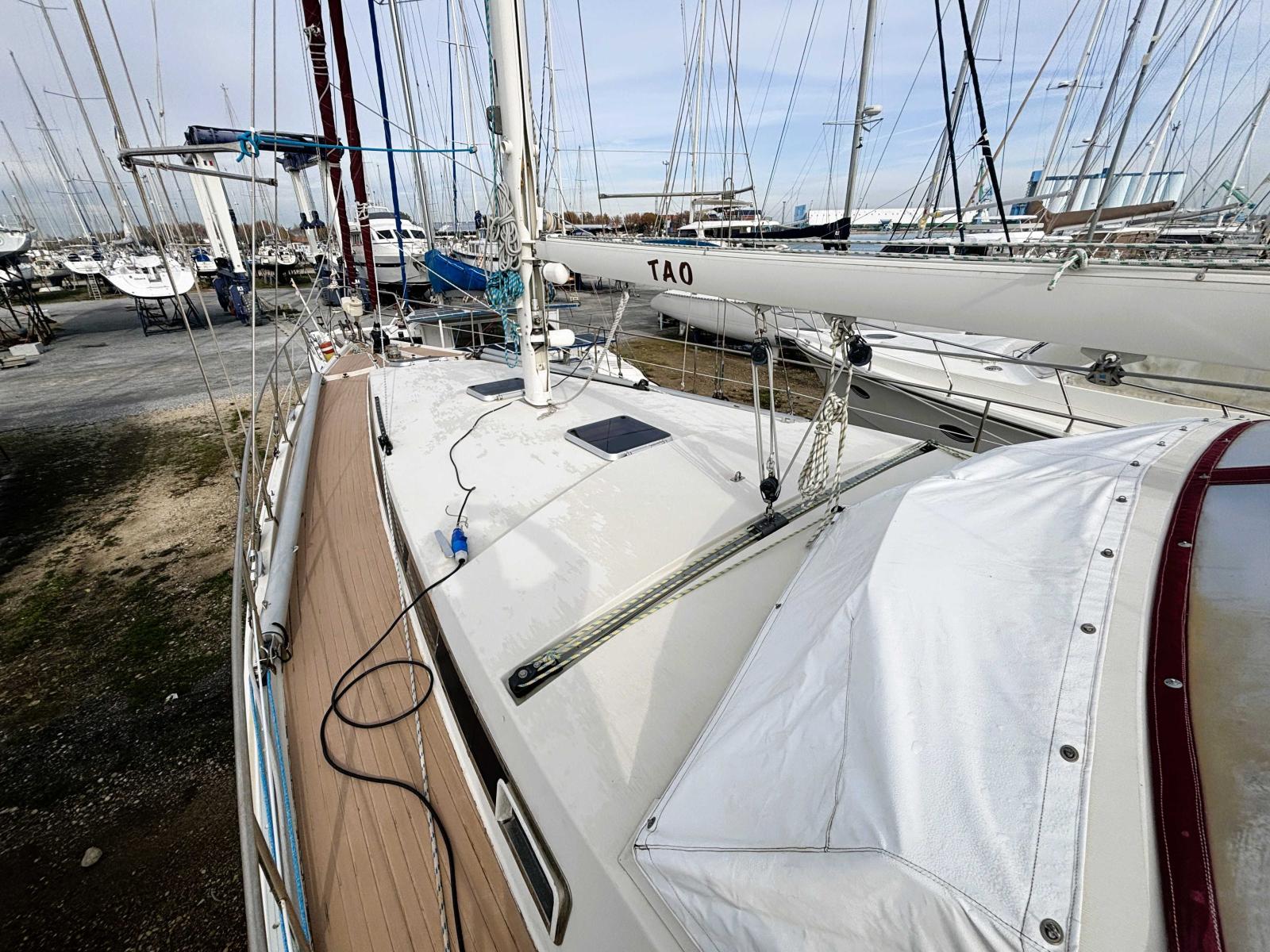 Equipé du pack confort, passerelle hydraulique, groupe électrogène 7kW, 3 groupes de clim, dessalinisateur 12V et 220V 60l/h, alternateur moteur 75 Ah + service 175 Ah, alternateur d'arbre disponible, hélice repliable neuve, hélices de secours, balise de détresse...