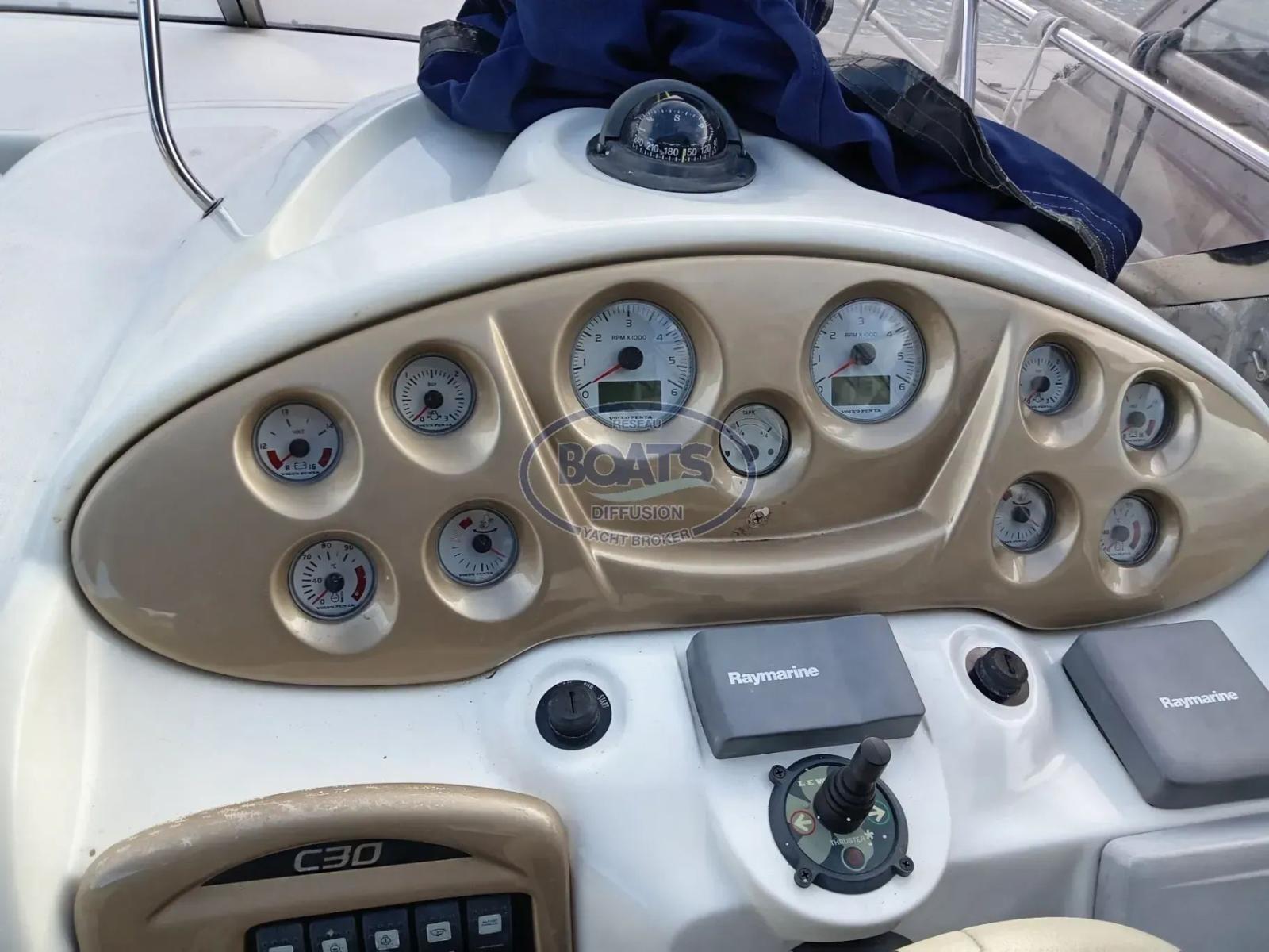 Propulsé par deux moteurs Volvo Diesel inboard de 190 ch chacun, assisté d’un propulseur d’étrave, il offre une navigation souple, précise et sécurisée, idéale pour profiter pleinement des eaux azuréennes, que ce soit pour une sortie en baie ou une croisière vers les îles.