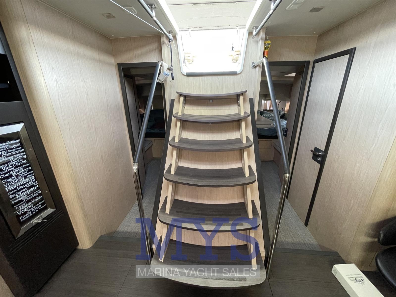 - Malgré sa taille, il est conçu pour être utilisé en équipage réduit grâce à des treuils électriques, des systèmes de direction ergonomiques et des propulseurs d’étrave/poupe.