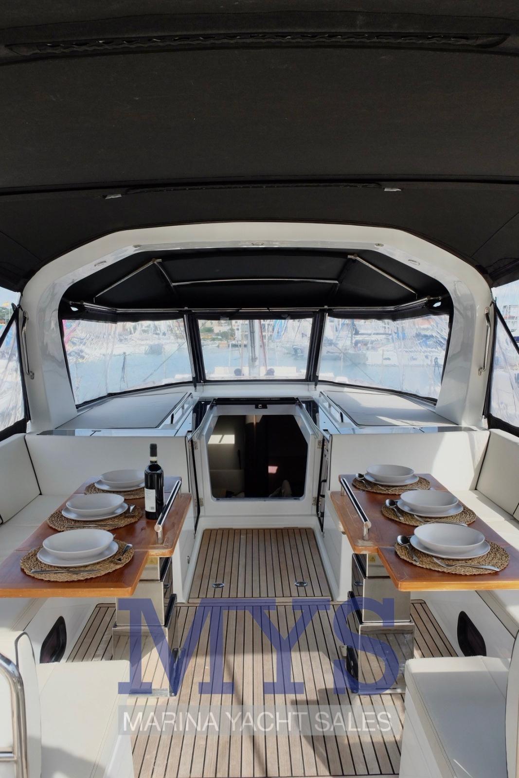 - Grand cockpit avec double coin détente et salle à manger, plate-forme arrière électrique qui devient un club de plage. Accès pratique à la mer.