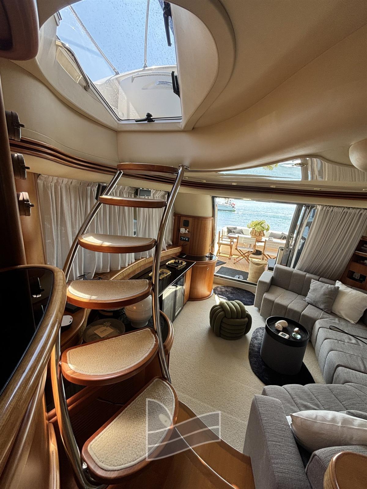 Eau sous pression, Passavant en teck, Douche de cockpit, Double barre à roue, 2 Flaps hydrauliques, Grue de flybridge, Extincteur(s) fixe(s), Lavage de chaine, Passerelle (elettroidraulica), Plateforme arrière (di poppa in teak), Porte latérale, 2 Porte latérale, Cockpit en teck, Prise de quai, Rollbar, Guindeau électrique, Echelle de bain, table de cockpit, Corne, Winch électrique avant.