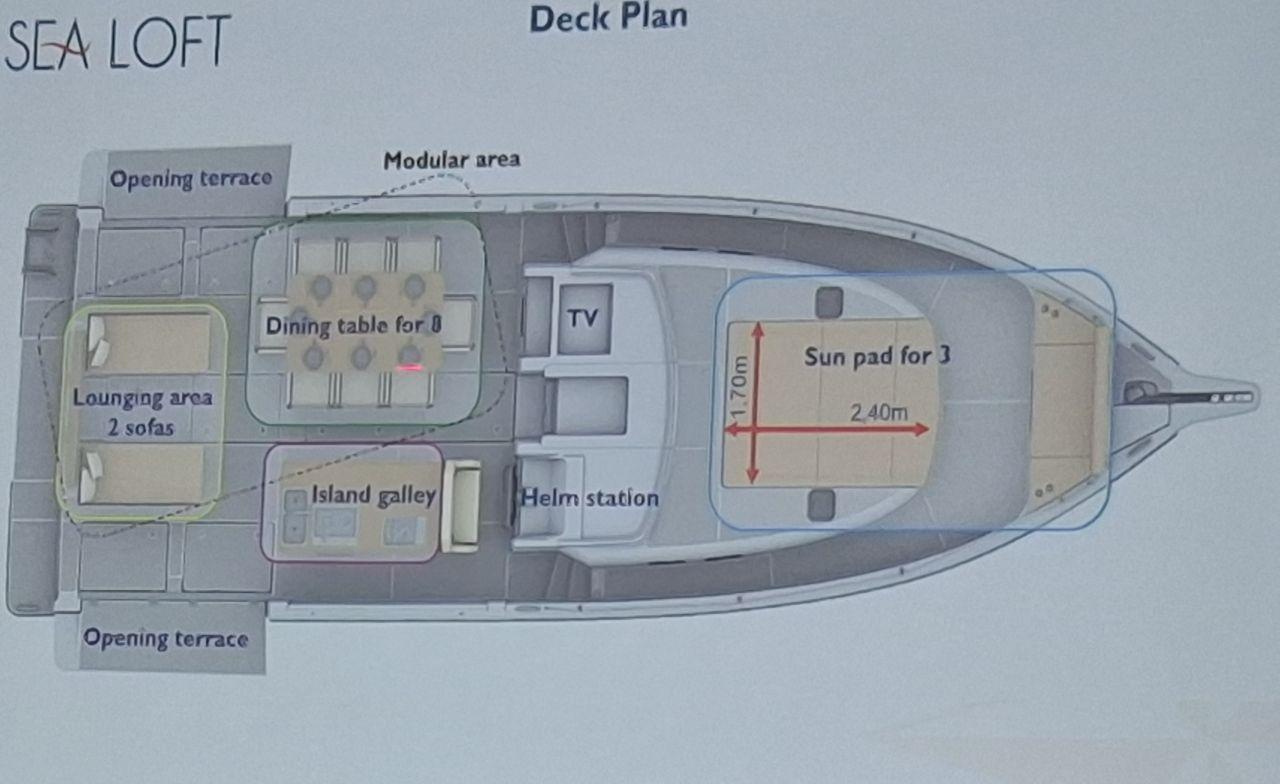 Conçu comme une villa flottante, vous allez être séduits par son confort intérieur exceptionnel et surpris par ses qualités de navigations silencieuses et respectueuses de l'environnement grâce à une autonomie électrique de 15 milles nautiques à 7 nœuds, et une autonomie hybride de 250 milles nautiques.