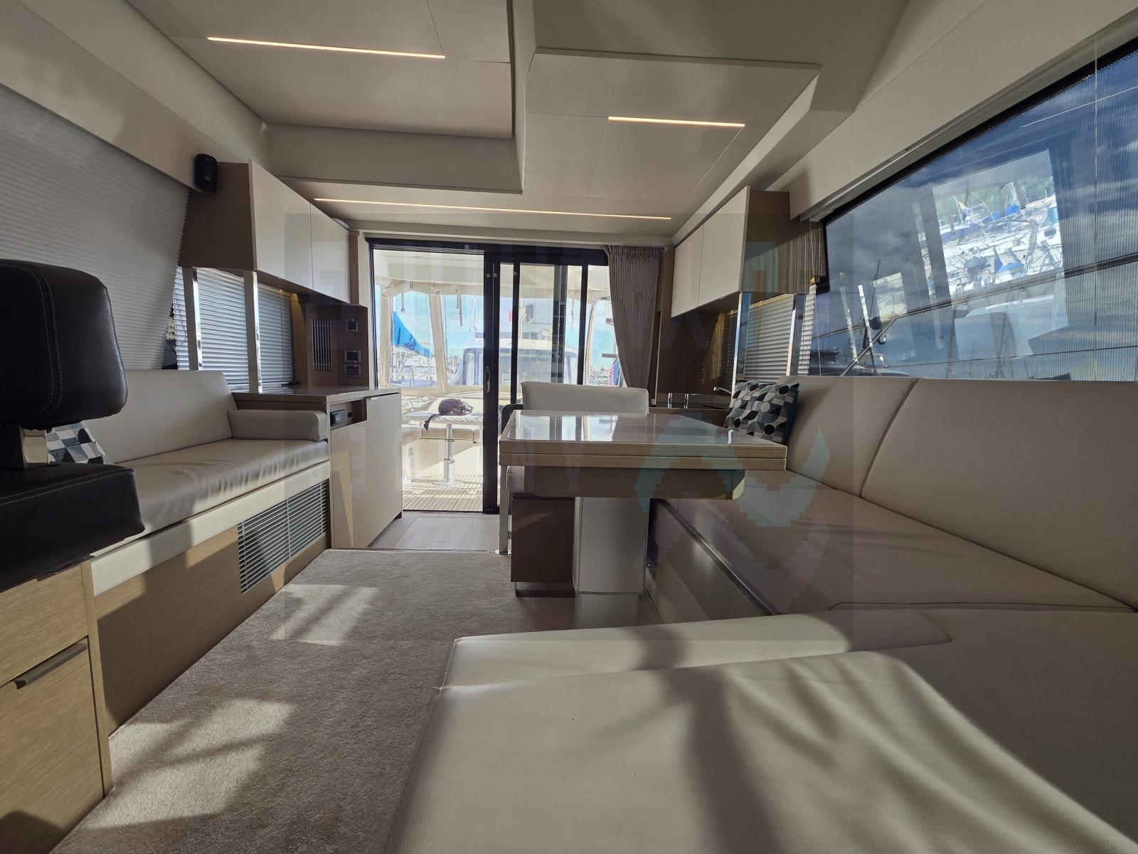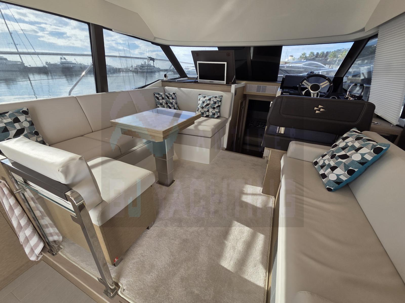 Rare sur le marché, ce Prestige 420 Fly millésime 2021 (mis à l'eau fin 2020) se distingue par son état irréprochable/proche du neuf, son équipement toutes options et sa configuration haut de gamme. Le modèle offre les atouts signatures du 420 : deux véritables cabines, deux salles d’eau indépendantes (en option), une circulation fluide à bord et une élégante finition en chêne grisé.