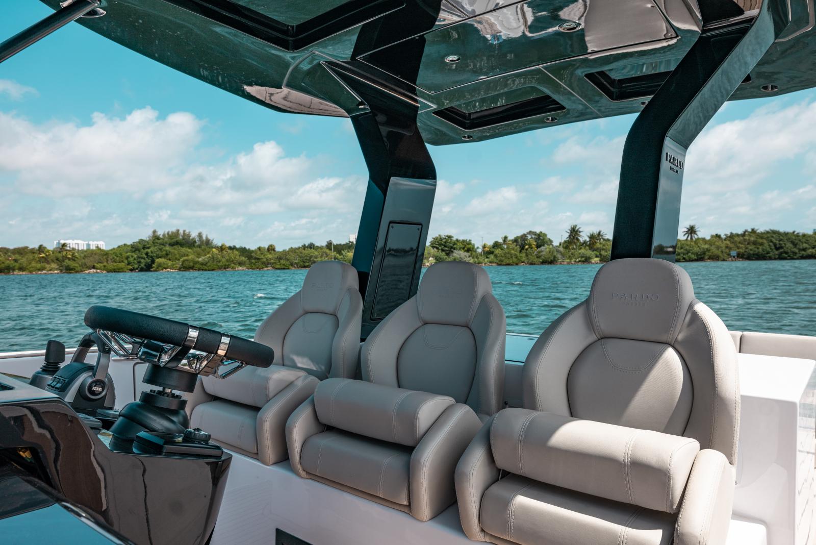 Le PARDO 38 conserve les bains de soleil à l'avant, la table de cockpit derrière la cuisine, une spacieuse cabine et une cabine invité.