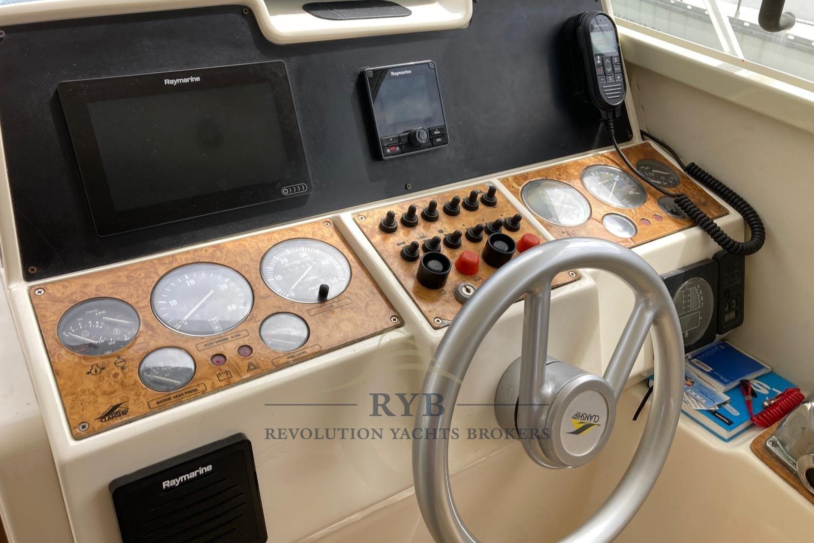 Eau sous pression (2024), Chargeur de batterie (2021), Couleur spéciale, Douche de cockpit, Double barre à roue, Phare de poursuite, Flaps hydrauliques, Éclairage de courtoisie, Passerelle, Plateforme arrière, Porte latérale, Cockpit en teck, Onduleur, Rollbar, Guindeau électrique, Echelle de bain, table de cockpit.