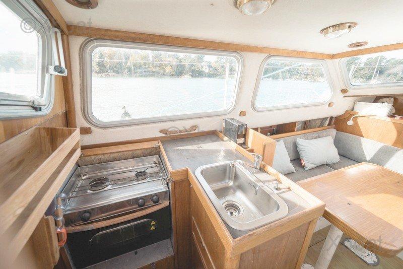 Je vends mon voilier Voyager 35, un modèle conçu par Angus Primrose et construit par le chantier britannique Trident Marine, réputé pour la qualité de ses Pilothouse.