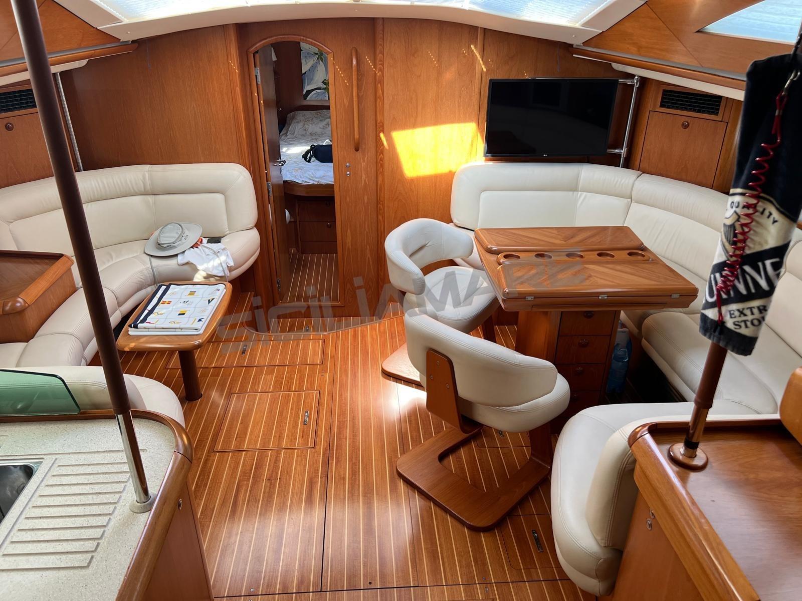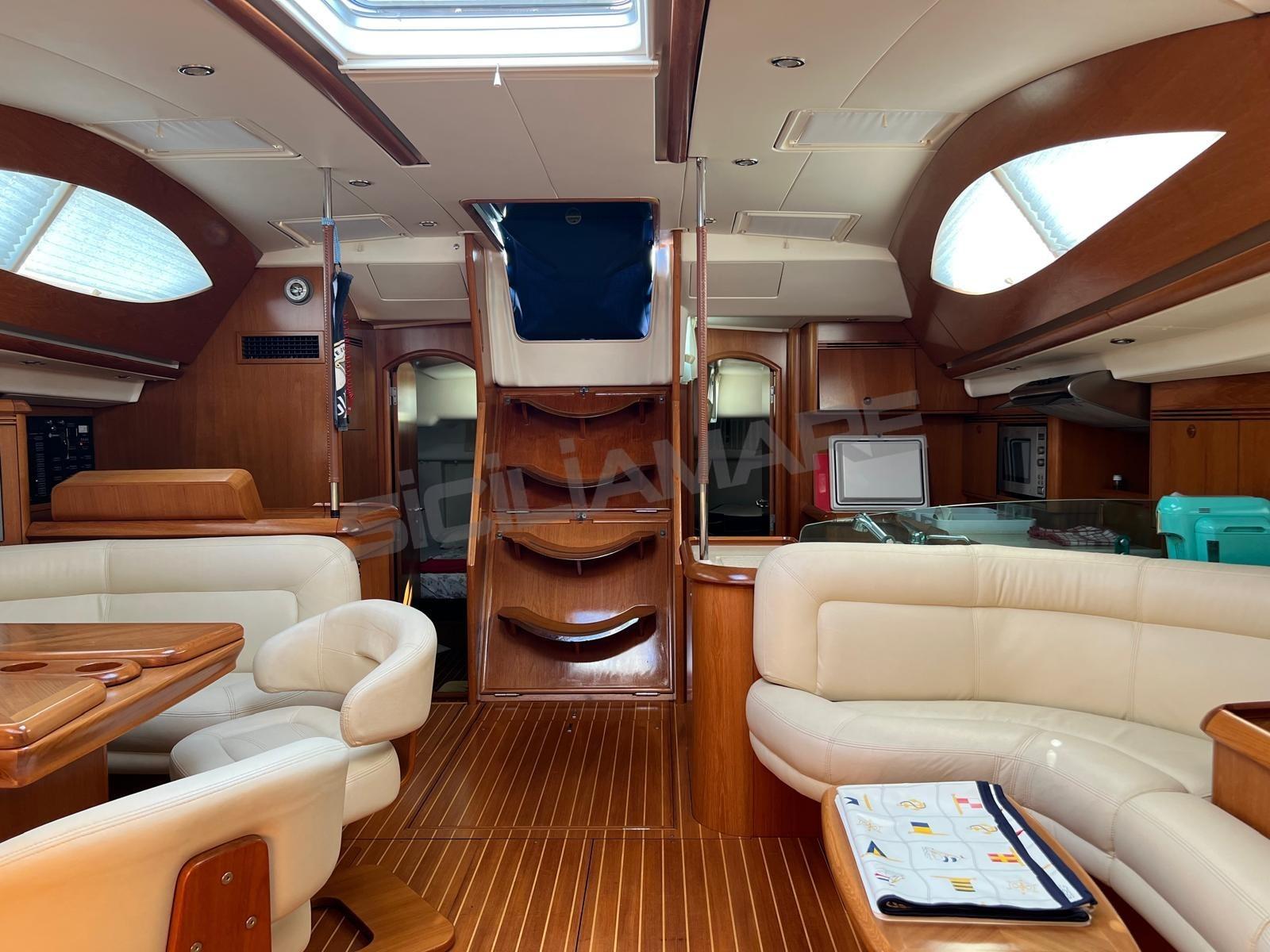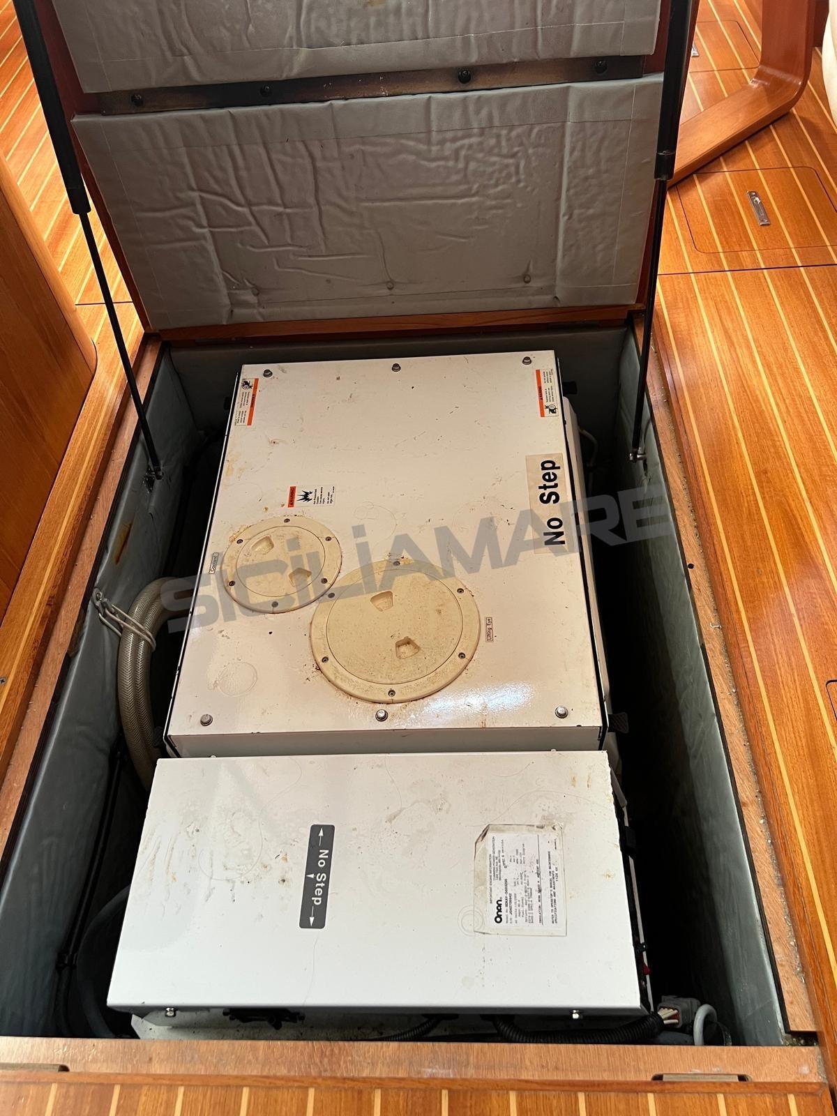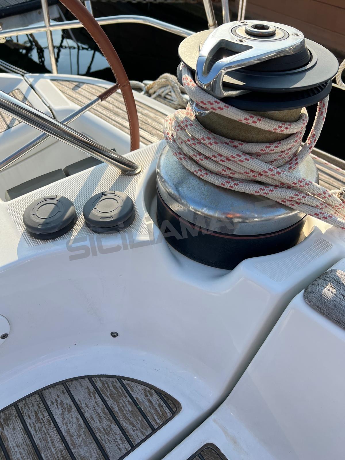 Alarme moteur, Alarme de pompe de cale, Eau sous pression, Système de vidange, Passavant en teck, Douche de cockpit, Double barre à roue, Hélice de rechange, Lavage de chaine, Éclairage de courtoisie, Passerelle (Hydraulic), Pompe de cale automatique, Pompe de cale manuelle, Cockpit en teck, Prise de quai, Connexion eau sous pression à quai, Répétiteur électronique, Guindeau électrique, Gréement monotoron, Echelle de bain, Selles pour Annexe, Chaise support HB, table de cockpit, Annexe, Filières avec sortie latèrale, 4 Winch, 3 Winch électrique, Winch électrique avant, Windex.