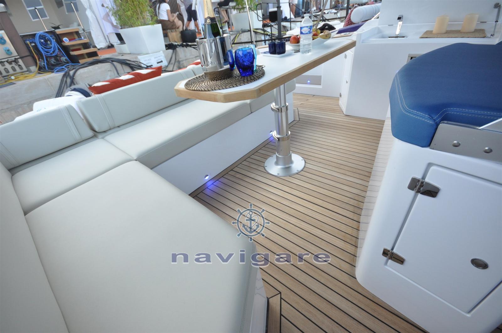 Le chantier naval est neuf, un pied en France, où il est basé, et un en Italie, où les bateaux sont construits. En particulier, les plus grands seront construits à Viareggio. Sur la Côte d’Azur j’ai eu l’occasion de tester le 44' Ischia, qui est le premier modèle, mais ils font déjà un 33' et dans les mois à venir ce sera le tour du 66'.