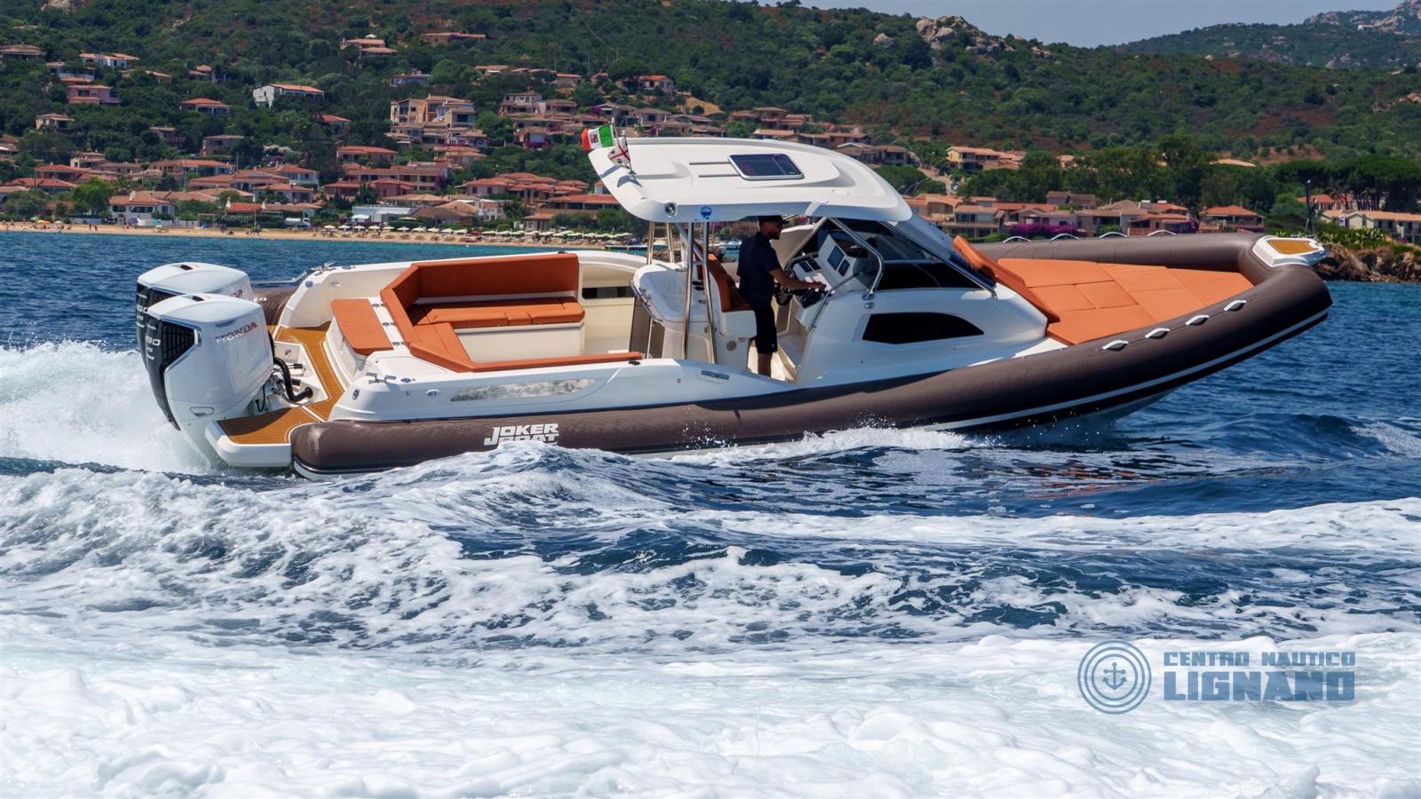 Offre Centro Nautico Lignano pour un tout nouveau dériveur Joker Boats 35 Clubman avec 2 moteurs Honda Marine BF350 Total White, couleur tubulaire de votre choix, complet avec accessoires dont : Haut-parleurs audio nr. 6, 12V, 4' AMP chargeur de batterie avec prise de quai et câble, certifié CE, Couleur du carénage, Console avec pare-brise, Coussins de bain de soleil et sièges conducteur, Crochets pour suspension, Crochets de ski, Gonfleur électrique, Système de douche, Kit de réparation, Feux de navigation, manuel d’utilisation, pagaie avec gaffe de bateau, Panneau utilitaire 16 fonctions, Pompe de cale x 2, Échelle intégrée en acier inoxydable, Signal sonore, Réservoir d’eau 170 lt, Réservoir de carburant en acier inoxydable 700 lt, Souffleur, Table électrique, Coussin d’extension de bain de soleil, Main courante dans la console, Treuil électrique avec ancre et chaîne. Boîte de guidage : évier, planche à découper, réfrigérateur de 75 litres, poubelle.