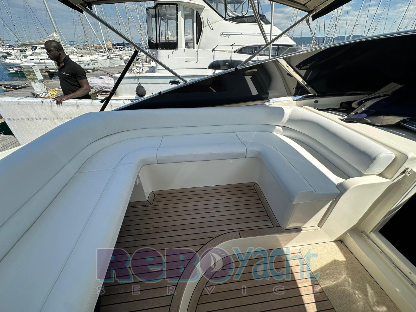 Ancre (Bruce con 60 m. catena), Eau sous pression, Câble d’alimentation à quai, Douche de cockpit, Flaps hydrauliques, Indicateurs de flaps, Passerelle (idraulica), Plateforme arrière (allungata + teak anno 2020), 2 Pompe de cale automatique, Cockpit en teck (anno 2020), Guindeau électrique, Echelle de bain, table de cockpit.