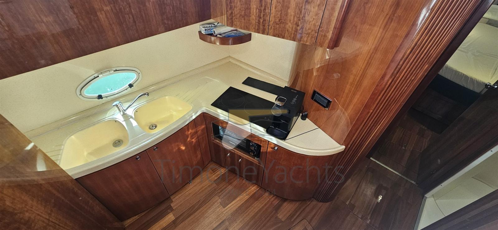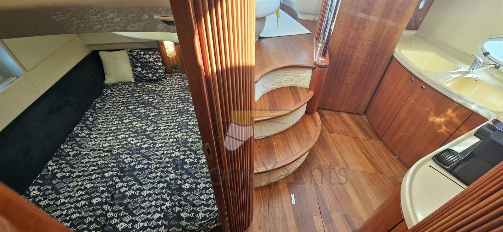 La coque offre une navigation stable et sûre, avec des performances équilibrées et une facilité de maniabilité. Un bateau fiable, toujours en demande sur le marché, parfait pour ceux qui souhaitent un petit flybridge mais complet dans tous les aspects.