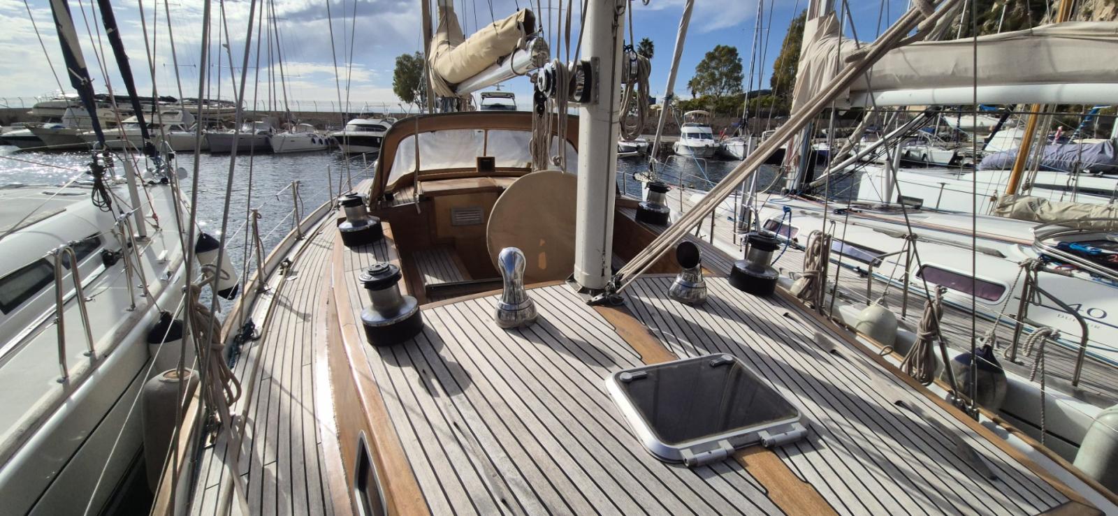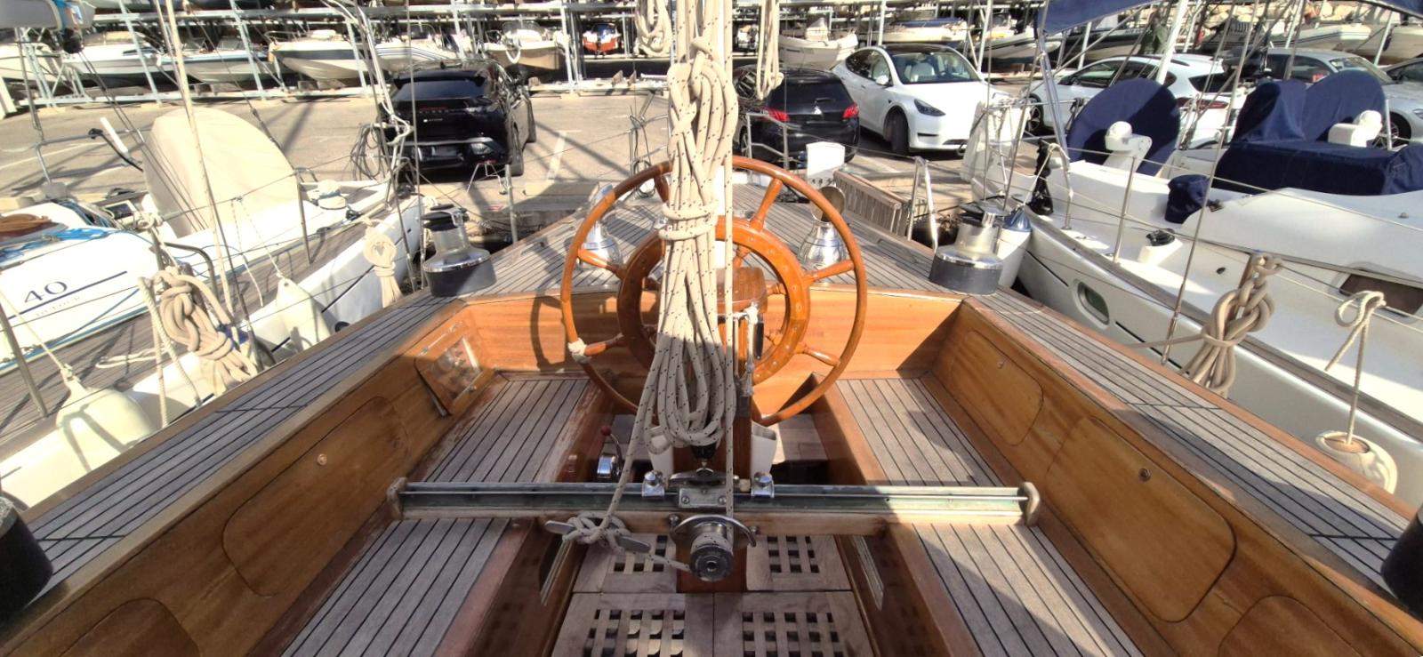 Construit en 1973 par le chantier Pichavant, ce magnifique voilier classique de 17 mètres incarne l’élégance intemporelle et le savoir-faire naval français. Conçu pour la croisière hauturière et les grandes régates méditerranéennes, il séduit par ses lignes harmonieuses, sa coque traditionnelle et son pont en teck récemment rénové.