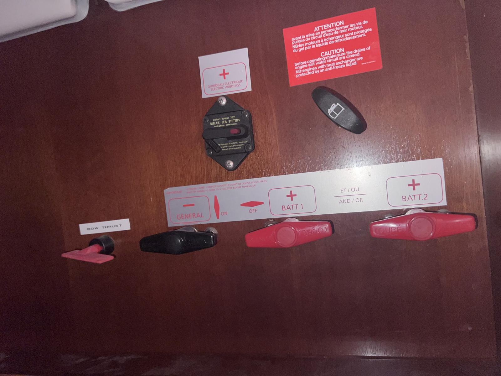(Biogom), propulseur d'étrave et hélice neufs, radio ICOM M93D neuve, 2 batteries de