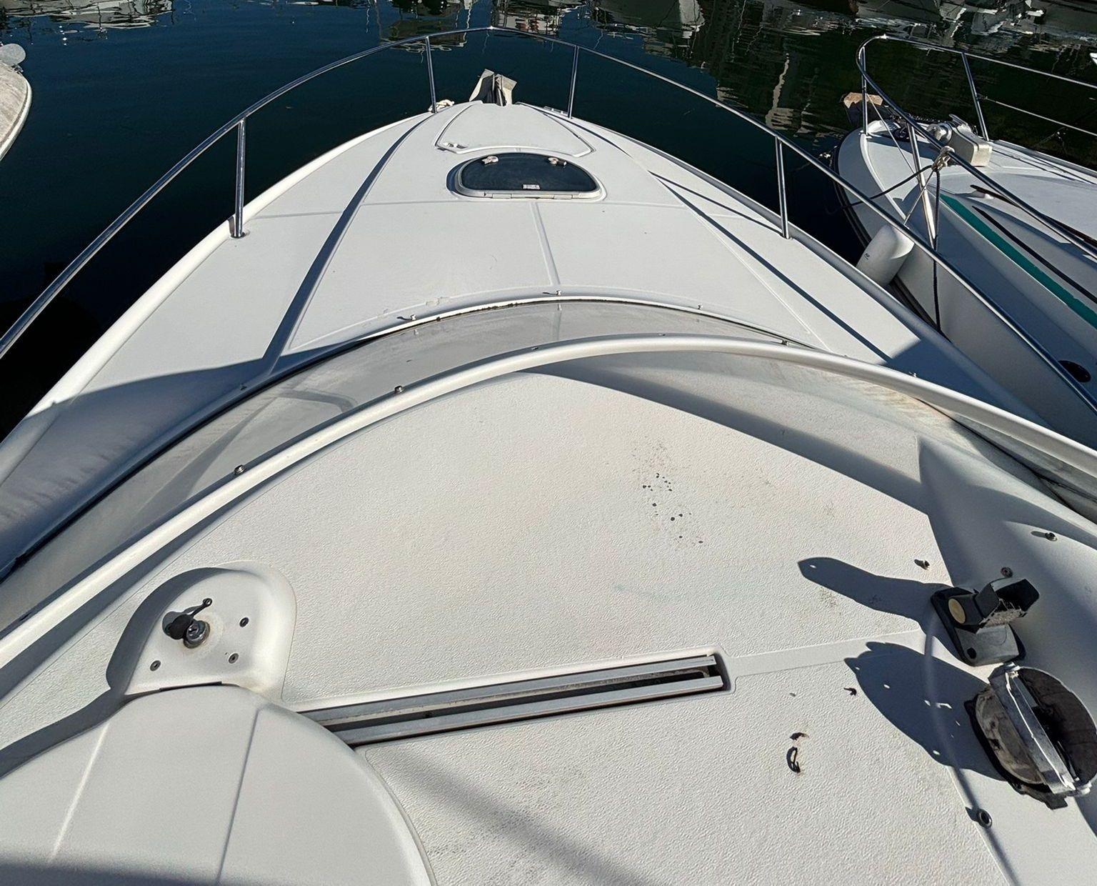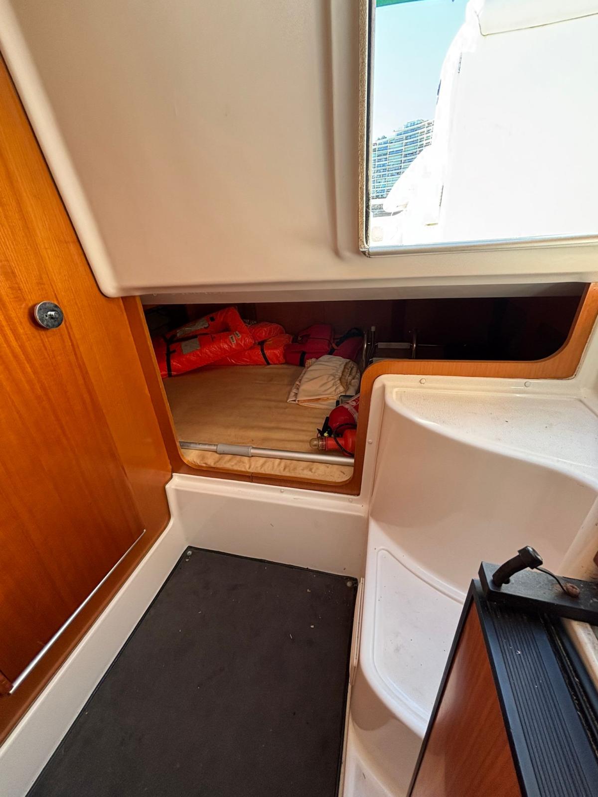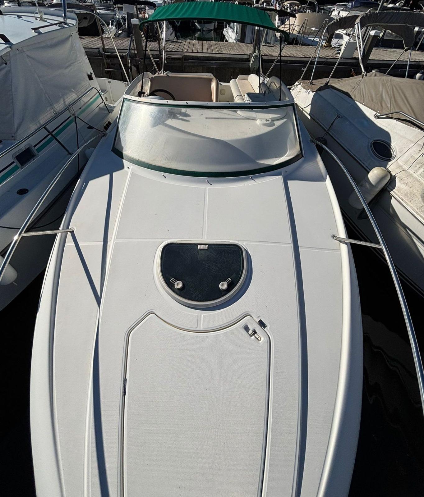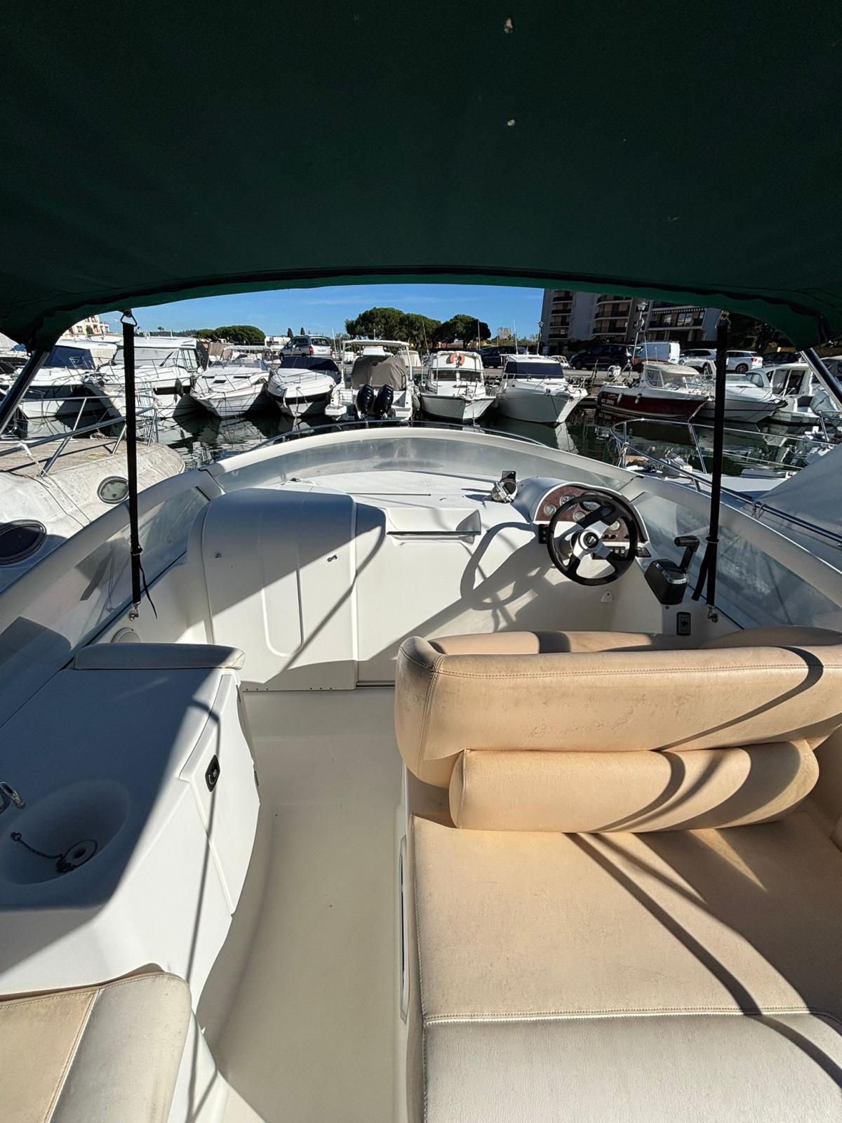 Il offre un espace généreux et une carène en V profond à quatre redans qui garantit stabilité et sécurité en navigation. Sa motorisation in-board essence Volvo Penta de 5.8L , d’une puissance de 250 chevaux, permet d’atteindre une vitesse proche de 30 nœuds pour des sensations fortes en toute confiance. Le réservoir carburant de 300 litres et le réservoir d’eau douce de 100 litres assurent une autonomie idéale pour des sorties prolongées. À bord, la cabine propose deux à quatre couchages, une cuisine équipée avec réchaud, évier et réfrigérateur, ainsi qu’un WC marin.