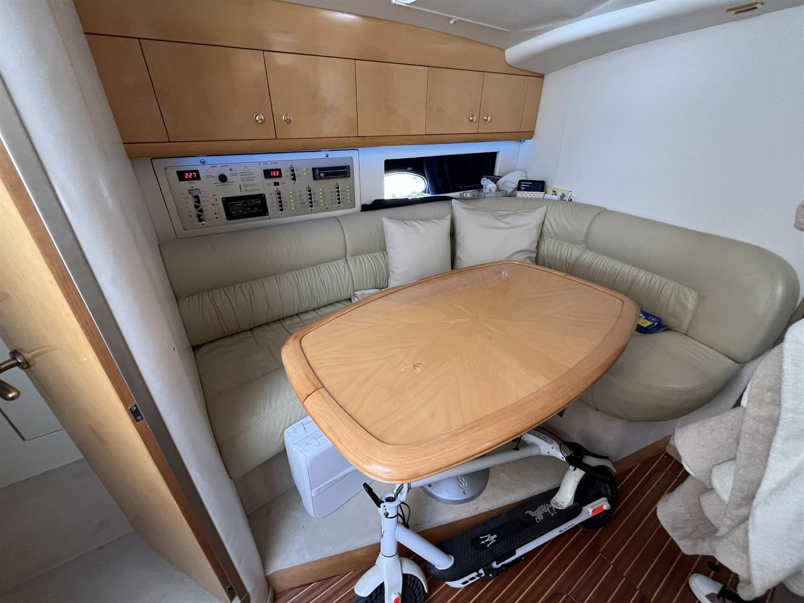 Alarme moteur, Eau sous pression, 3 Batteries, Douche de cockpit (calda e fredda), Flaps électriques, Lavabo dans le cockpit, Moteur hors-bord pour annexe, Passerelle (idraulica besenzoni), Pompe de cale automatique, Cockpit en teck, Prise de quai, Onduleur, Rollbar, Guindeau électrique, Echelle de bain, table de cockpit.