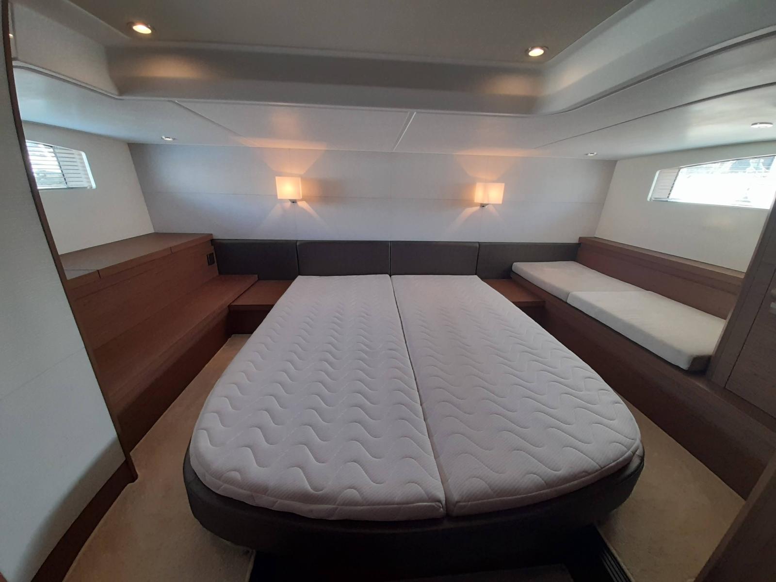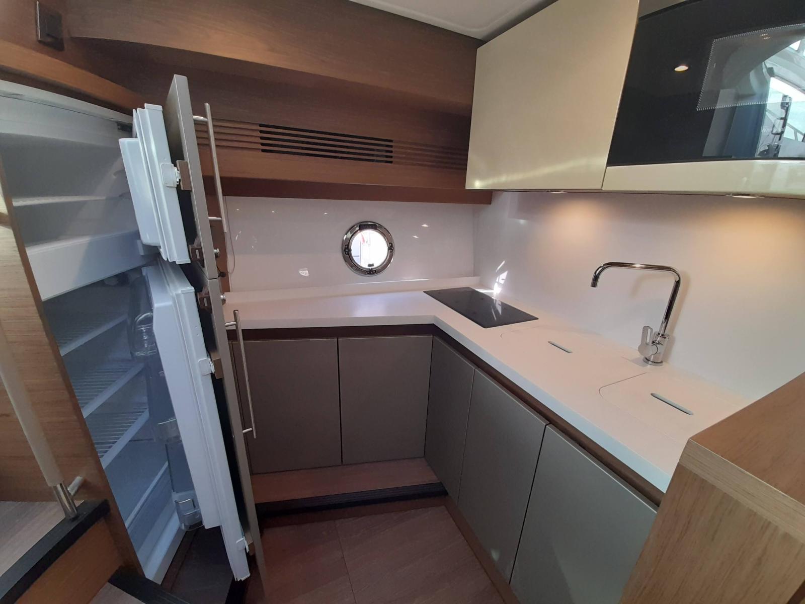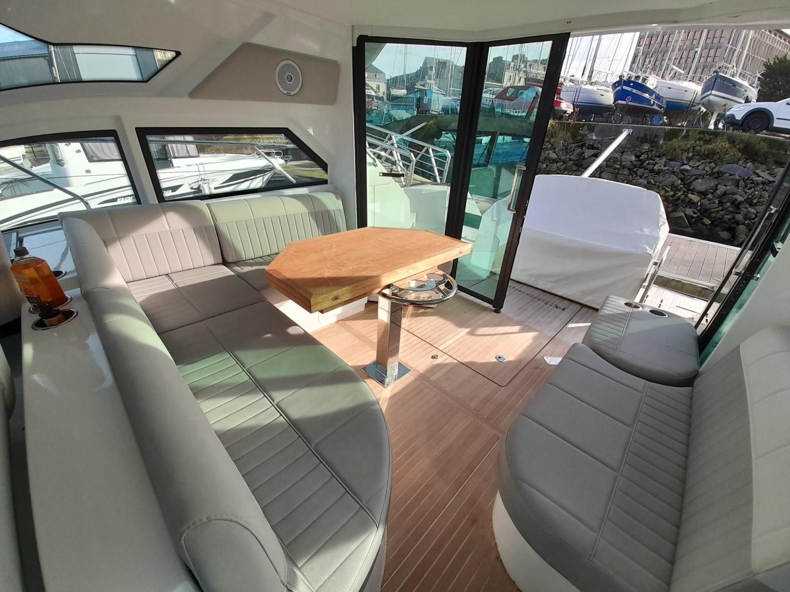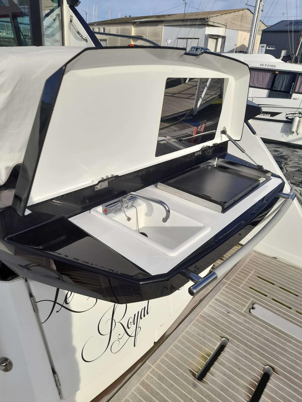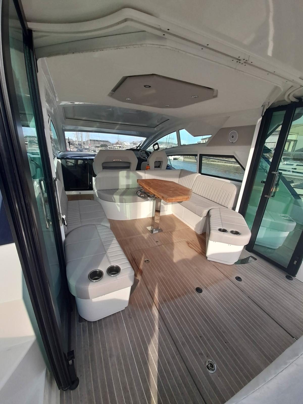 Avec sa silhouette sportive et racée, le Gran Turismo 46 combine un hard-top totalement ouvrant, des vitrages latéraux électriques et une large porte vitrée ouvrante qui permet d’isoler le cockpit. Alliance parfaite de protection et d’ouverture, il offre deux possibilités d’aménagement du pont : cuisine à l’arrière ou cuisine dans le cockpit.