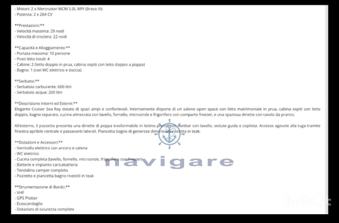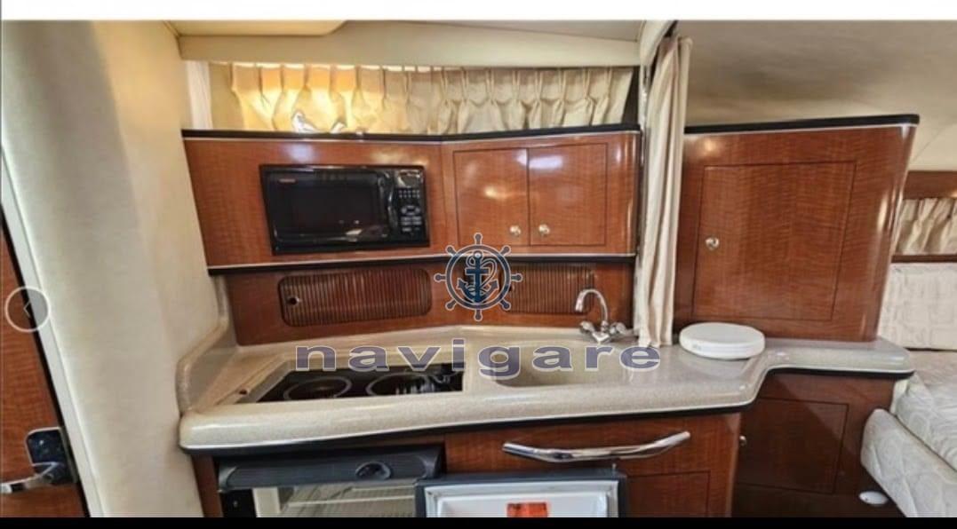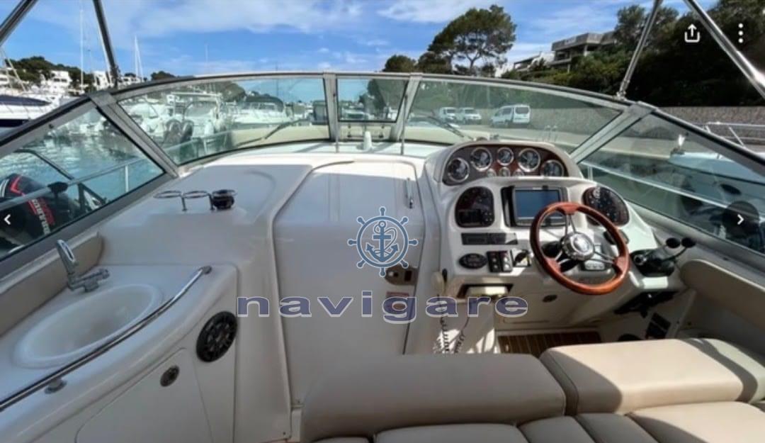 Elégant Sea Ray Cruiser équipé d’espaces vastes et confortables. À l’intérieur, il dispose d’un salon ouvert avec lit double à l’avant, cabine d’invités avec lit