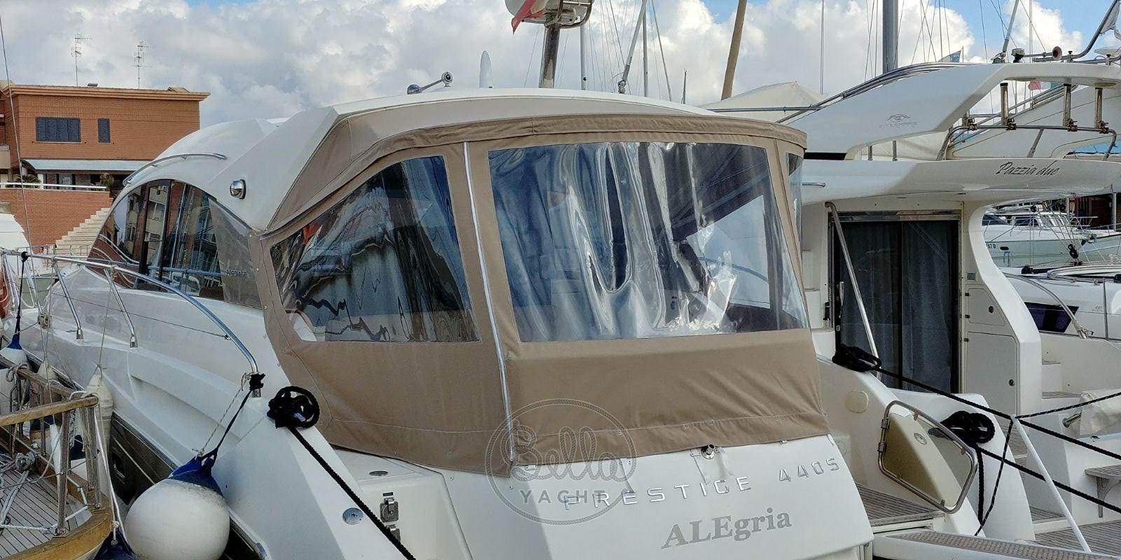 Alarme moteur, Couleur spéciale, Douche de cockpit (Calda/Fredda), Flaps électriques, Garage à annexe, Hard top, Extincteur(s) fixe(s), Indicateurs de flaps, Éclairage de courtoisie, Passerelle (Idraulica a scomparsa), Plateforme arrière, Pompe de cale automatique, Porte latérale, Cockpit en teck, Prise de quai, Guindeau électrique, Echelle de bain, table de cockpit, Corne (Sostituita 2017).