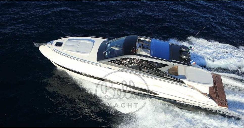 Alarme moteur, Eau sous pression, Couleur spéciale, Douche de cockpit, Phare de poursuite, Garage à annexe, Hard top, Extincteur(s) fixe(s), Éclairage de courtoisie, Spots sous-marins, Passerelle, Plateforme arrière, Cockpit en teck, Prise de quai, Guindeau électrique, Echelle de bain, table de cockpit, Corne.
